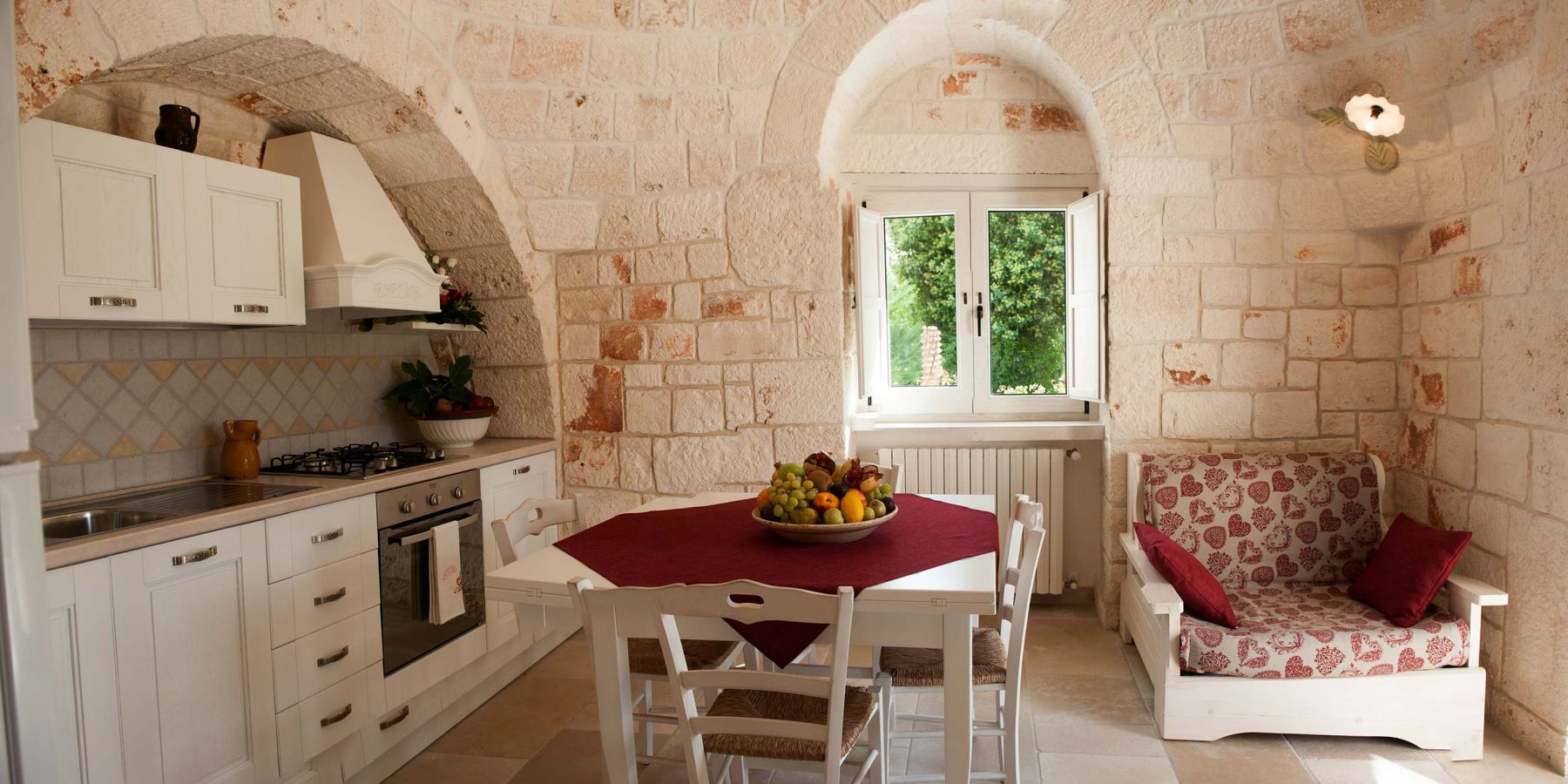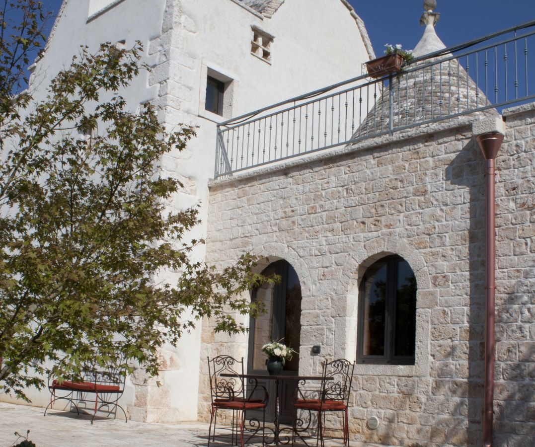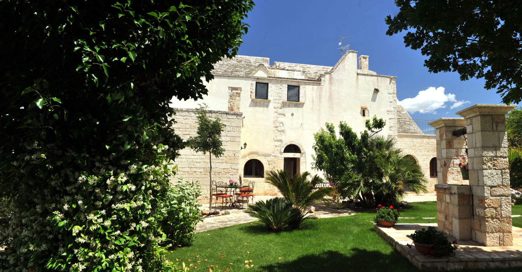 Das alte Landhaus aus typisch heimischen Stein liegt eingebettet im Grün des Itria Tals und nahe bei Martina Franca, Ostuni und Cisternino.