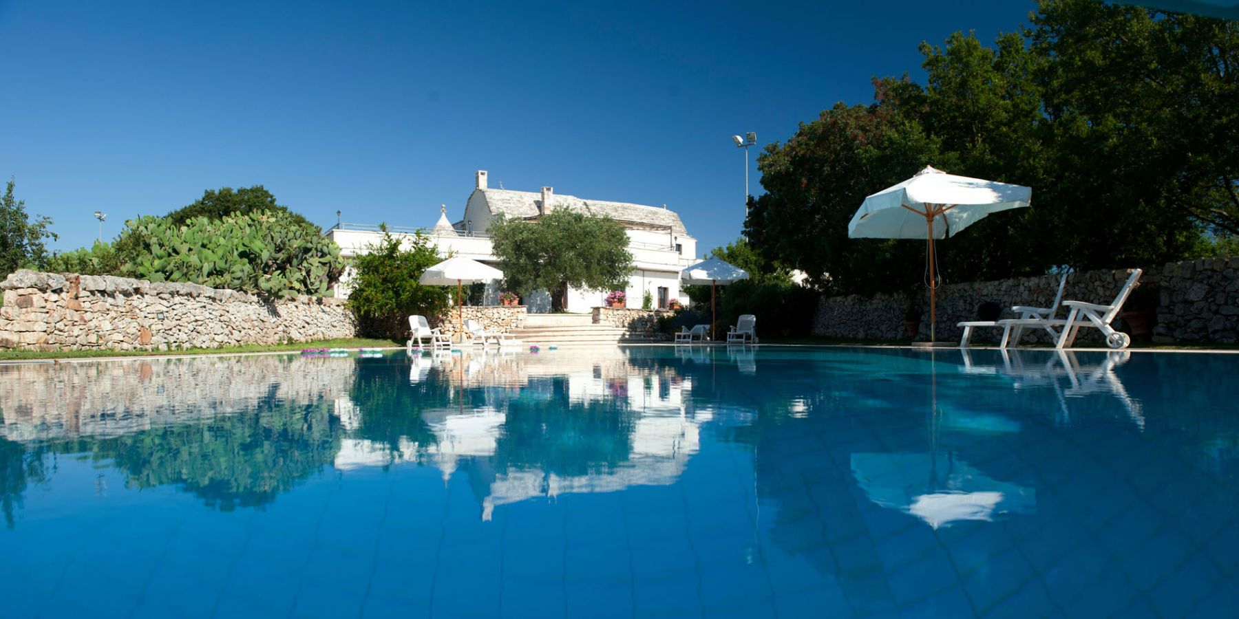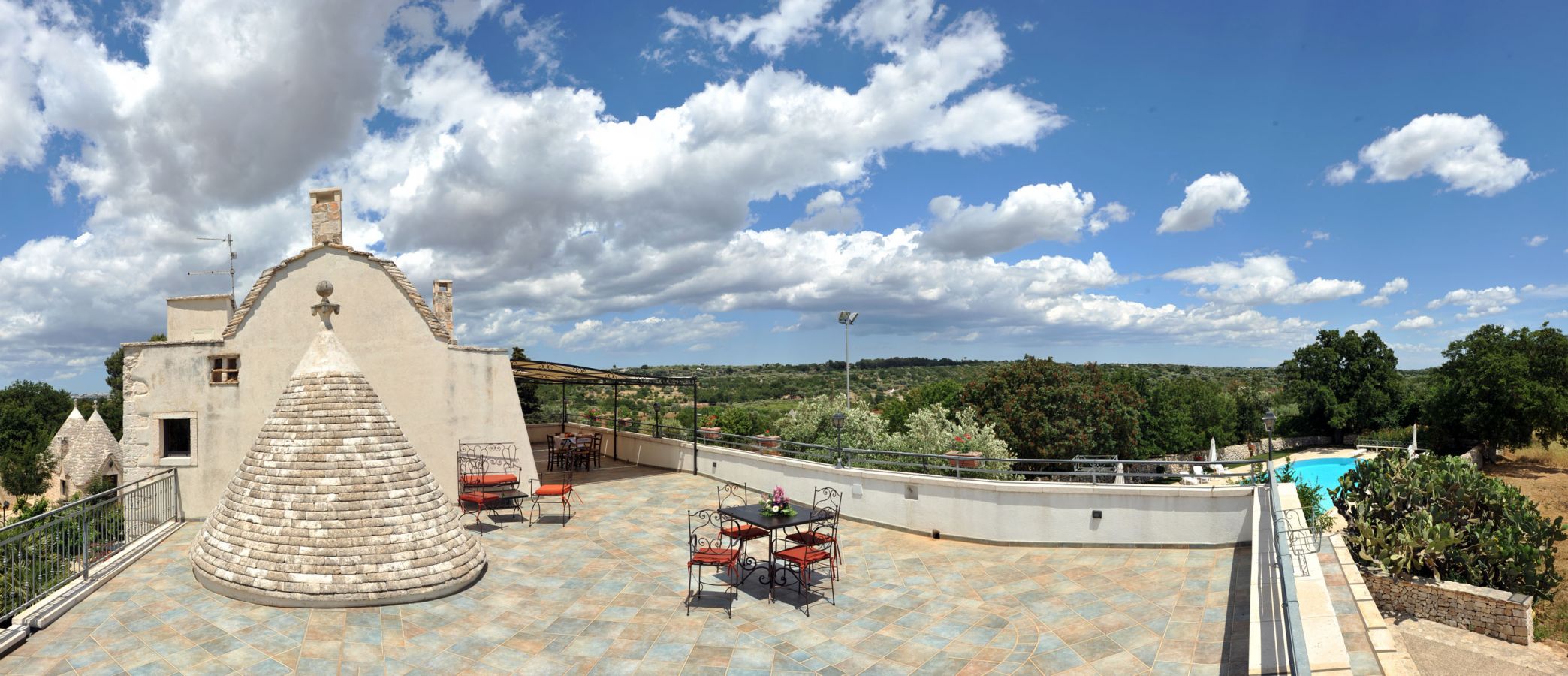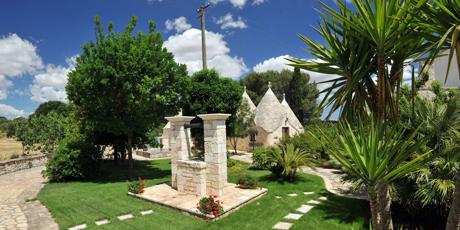 Das alte Landhaus aus typisch heimischen Stein liegt eingebettet im Grün des Itria Tals und nahe bei Martina Franca, Ostuni und Cisternino.