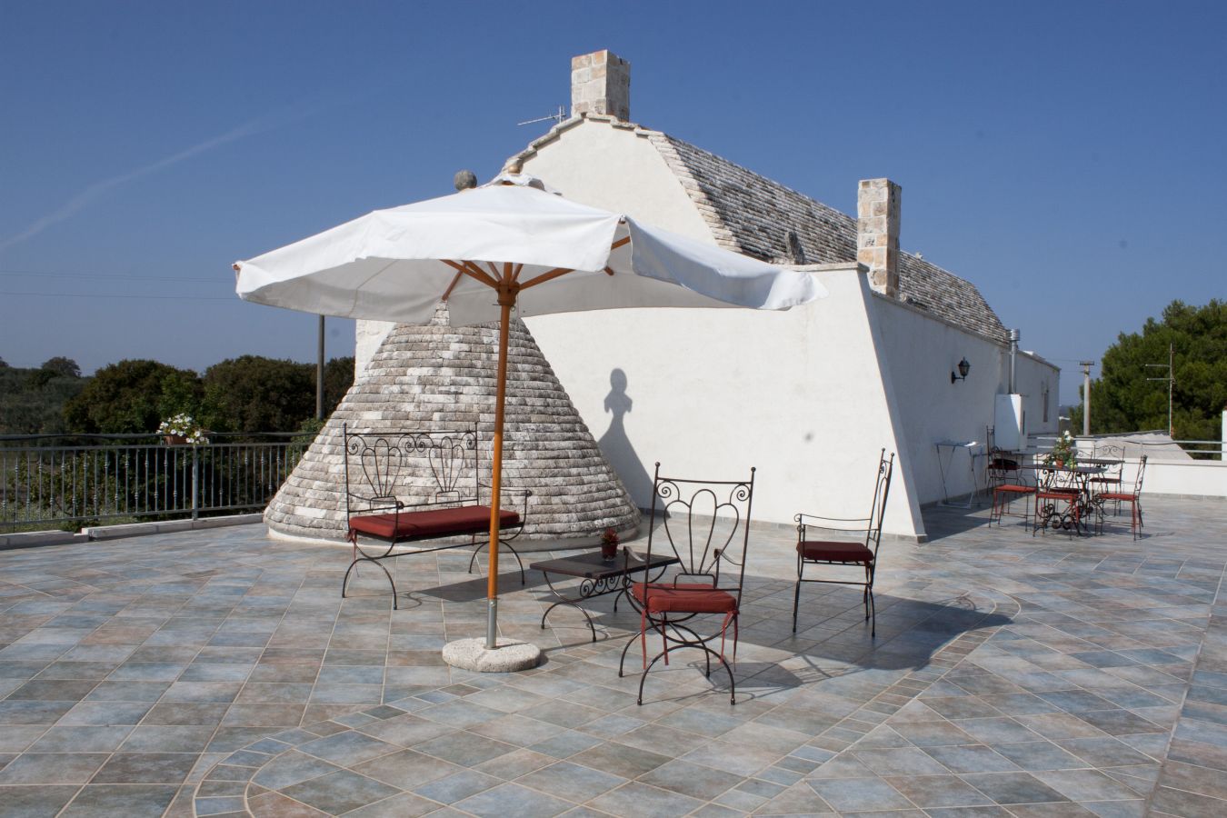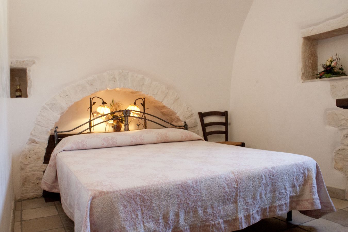 - Trullo (40 m²): Trullo für 2+1 Personen im Erdgeschoss: Doppelzimmer, Küche mit Kamin und Liegestuhl-Bett, Bad mit Dusche, möblierter Aussenplatz;