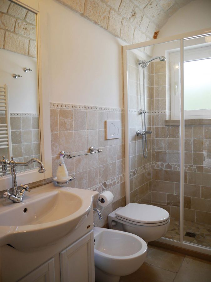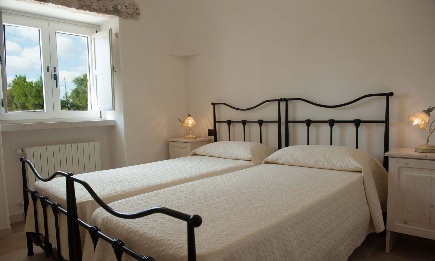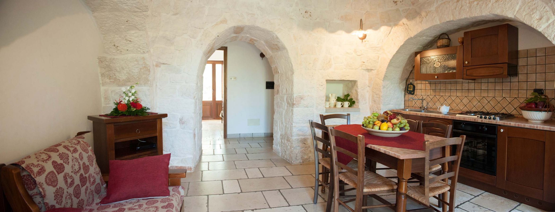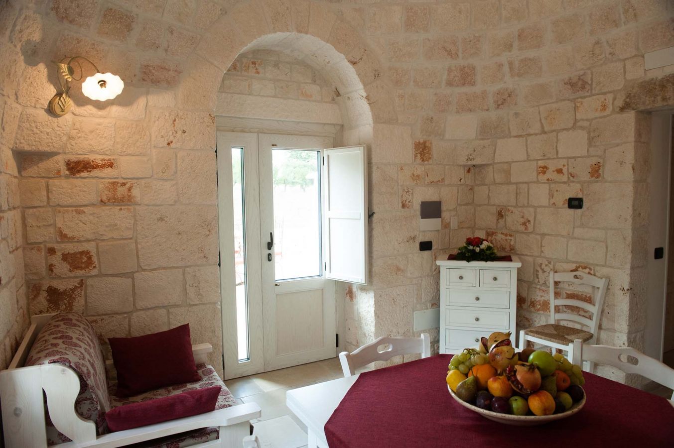 - Melograno (55 m²): Trullo für 4+1 Personen im Erdgeschoss: Doppelzimmer, Twin-Zimmer, Wohnzimmer mit Kitchenette und Liegestuhl-Bett, Bad mit Dusche.