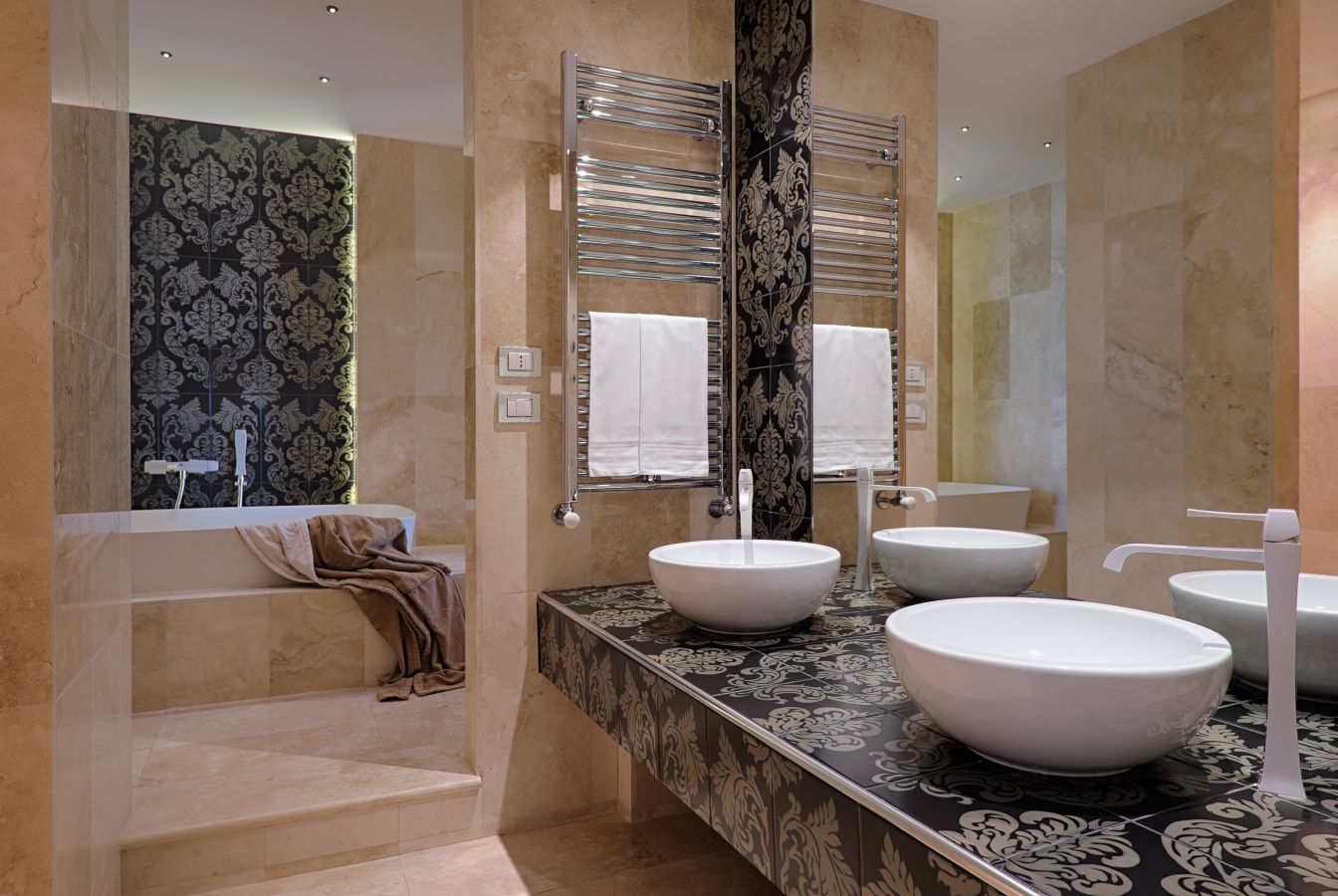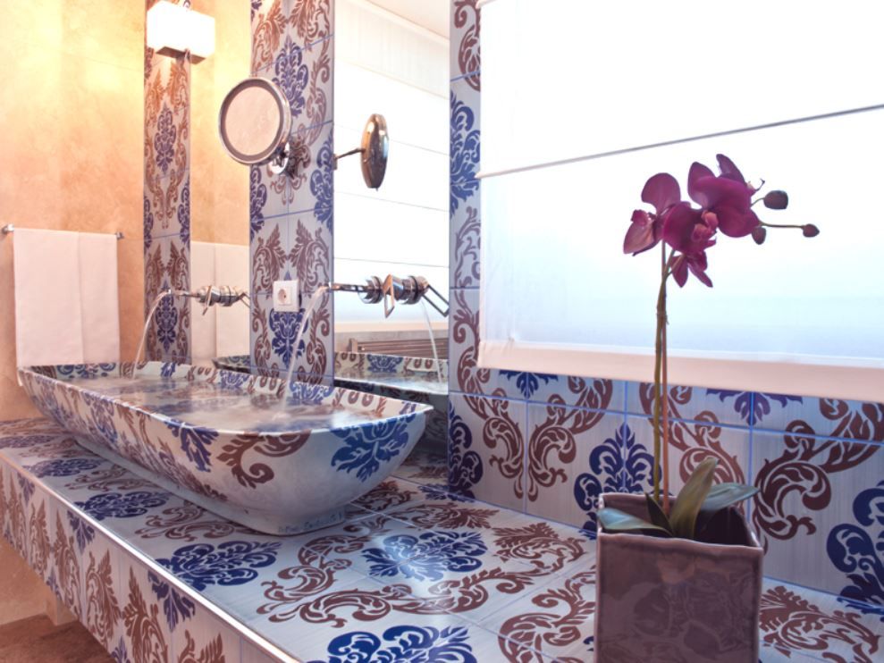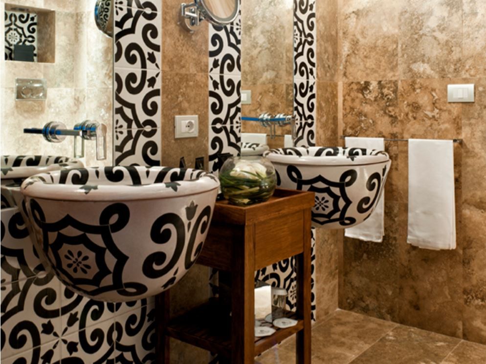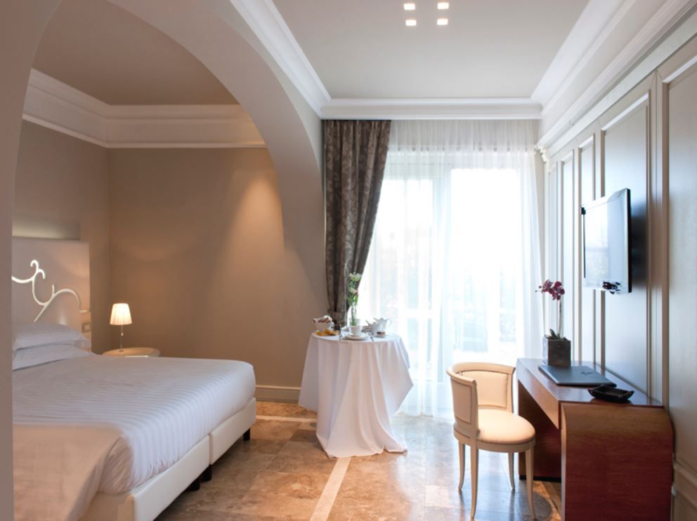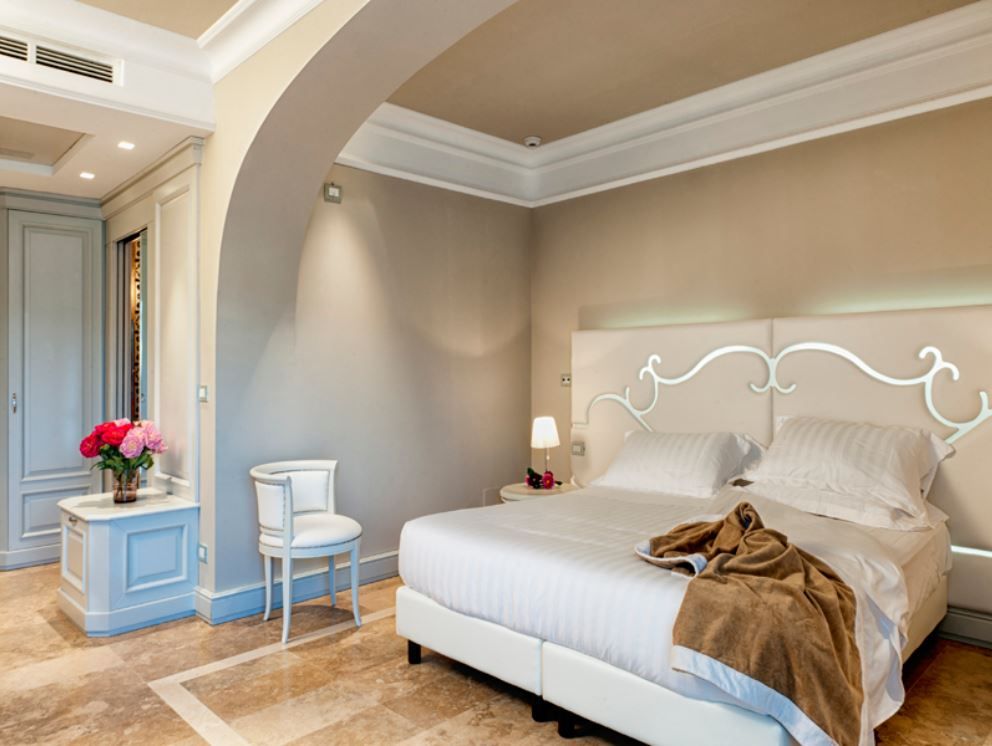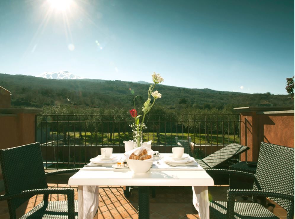 - 6 Junior Suite (37 m² für 2+1 Personen): 3 Zimmer befinden sich im 1. Stock und haben einen eigenen Balkon mit Blick auf dem Ätna; 1 Zimmer befindet sich im 2. Stock und hat ein Balkon mit Blick auf dem Ätna; 2 Zimmer haben ein Fenster mit Meerblick und wertvolle Keramik und Marmor