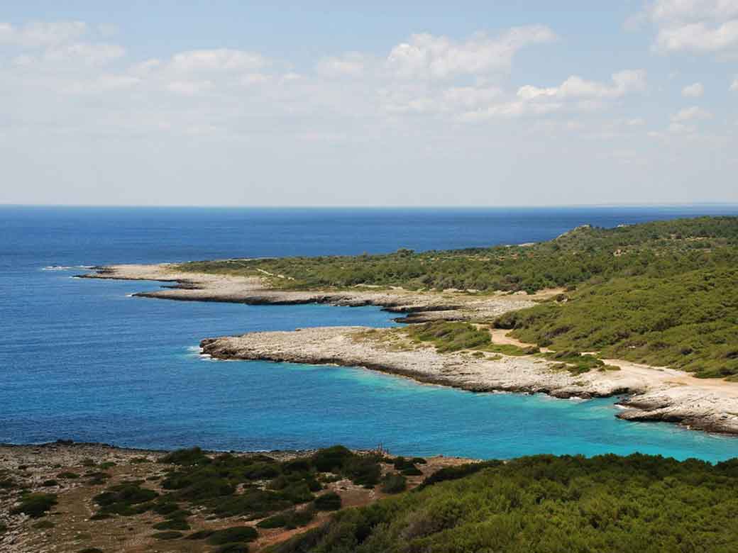 A short walk through pine woods, within the Nature Reserve and down to an amazing fringing reef and the blue sea. Set between Gallipoli and Porto Cesareo.