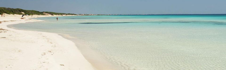 A sandy one-kilometer white beach stretching out towards a 14th century old watch tower, soft dunes covered with Mediterranean scrub and crystal clear waters with a low seabed. Given a gradual access to the sea, this beach is particularly suitable to families. Water sports and boat trips can be booked at the several beach clubs along the coast.