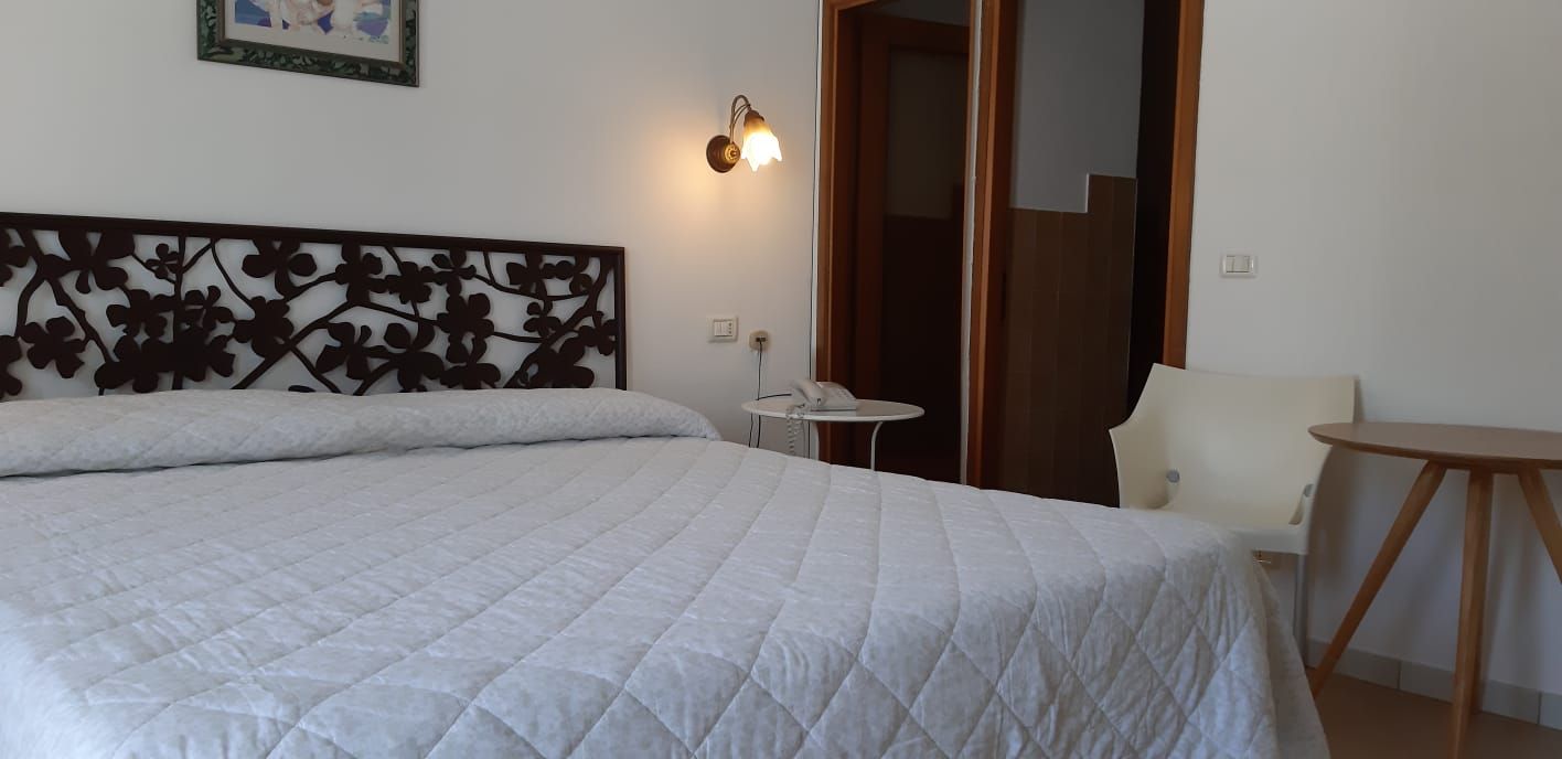 - 2 classic double rooms with terrace on the 1° floor (12 m²); double bed and bathroom with shower; equipped terrace (4 m²)
