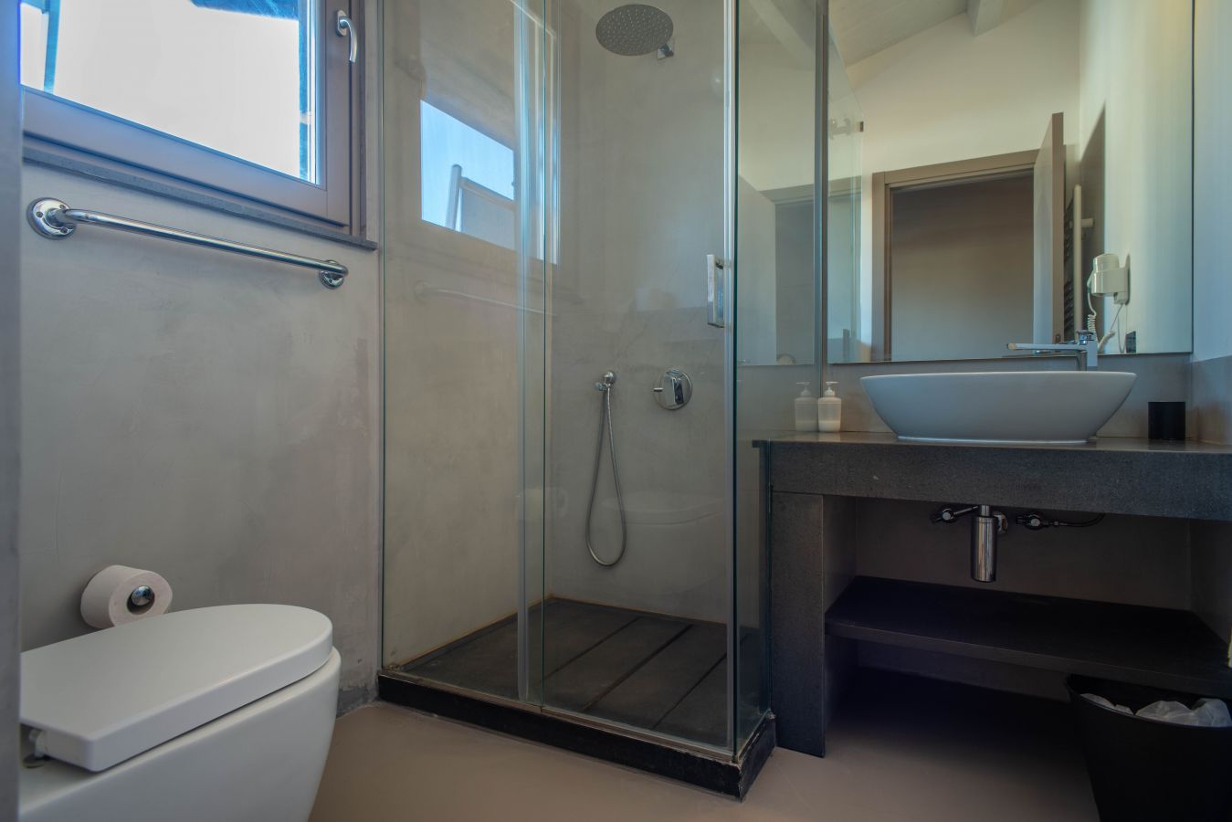 - 3 double rooms on the first floor (19 m² + bathroom); queen-size bed, bathroom with shower, and small balcony