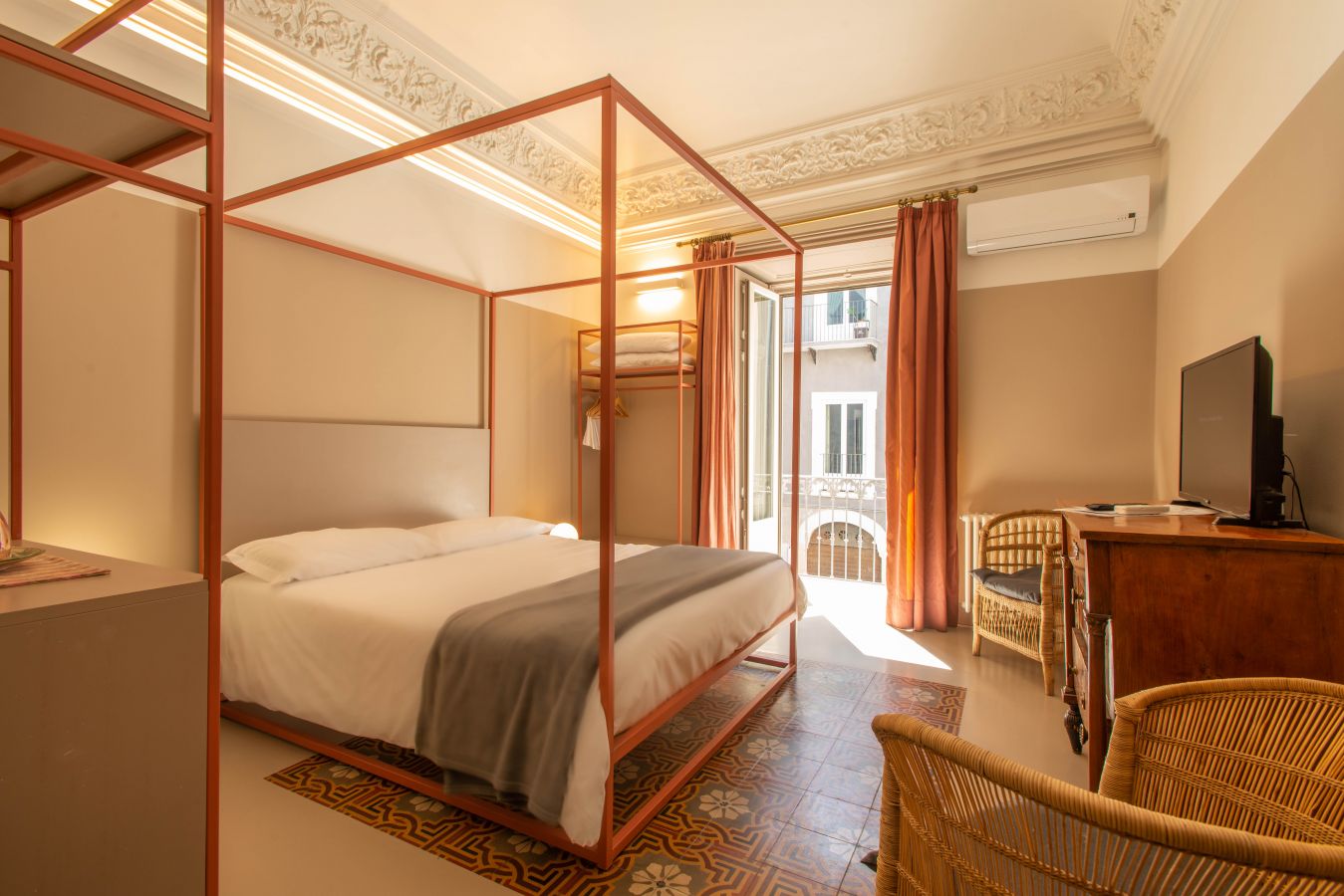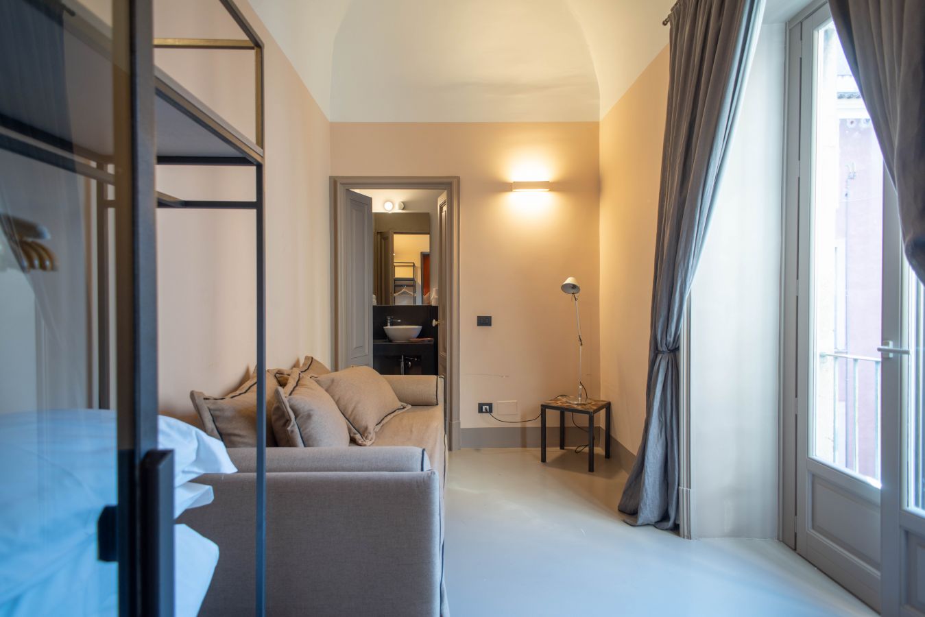 Historical building with an internal courtyard in the historic centre of Catania, 100 metres from the cathedral, with lounges, modern and functional rooms and apartments. 3 km from the city’s beaches
