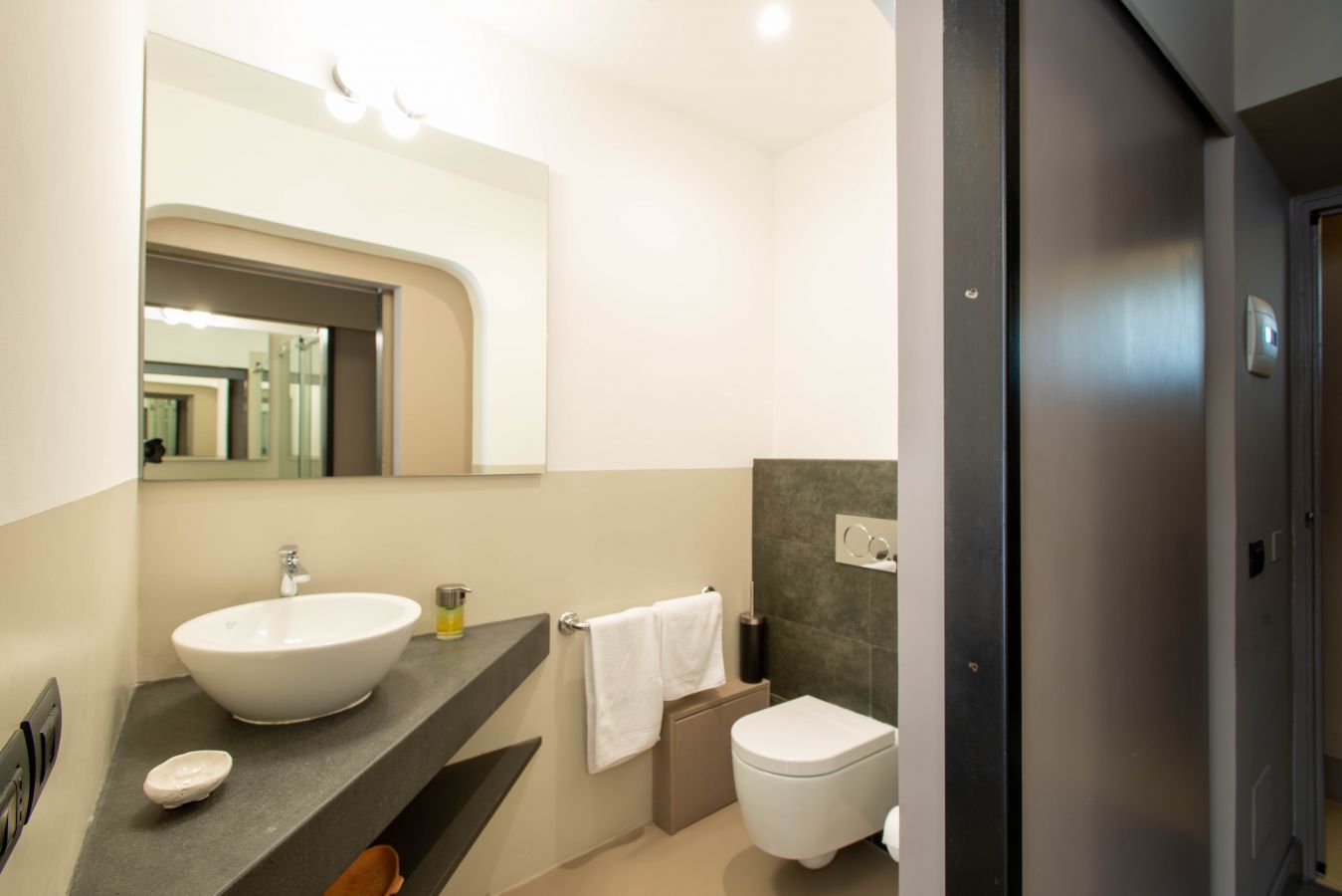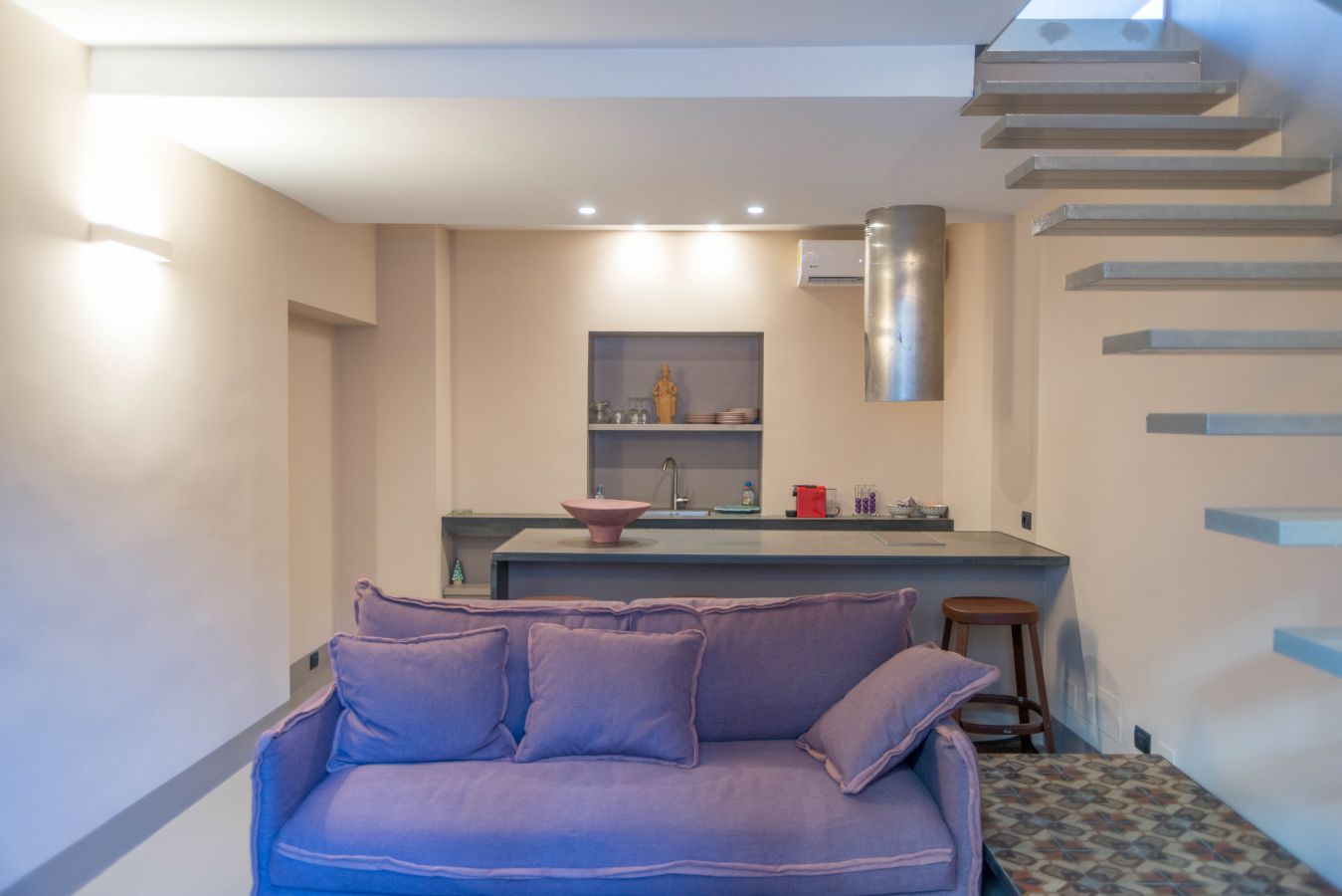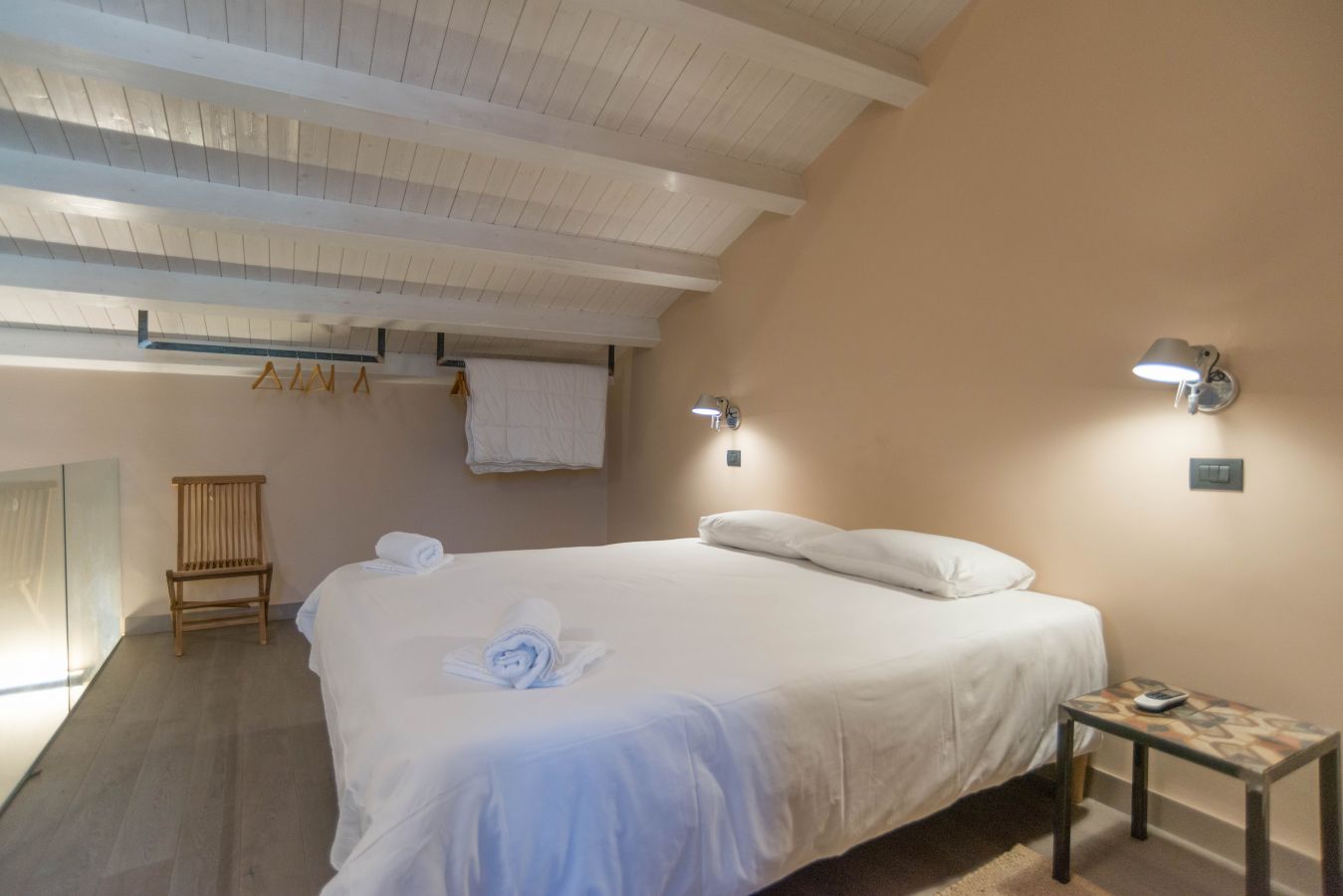 - Extra apartment n. 5 for 4 + 3 guests: 2-bedroom apartment on the second floor (90 m² + 2 bathrooms), spread over 2 levels: on the lower floor, a living room/kitchen with a double sofa bed, double bedroom, and 1 bathroom with shower; on the mezzanine, a triple bedroom, bathroom with shower, a 15 m² equipped terrace