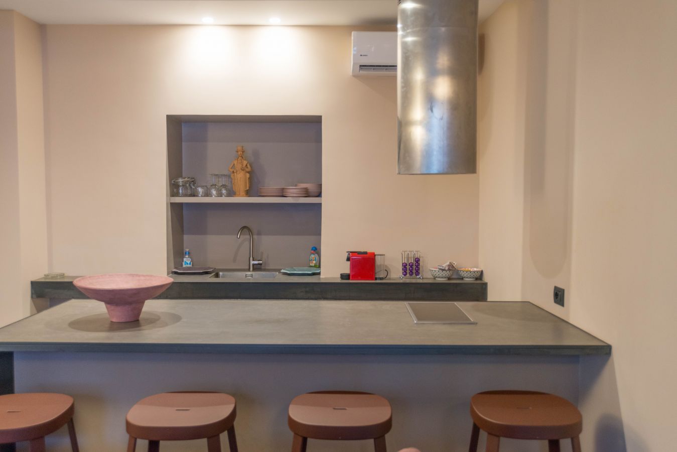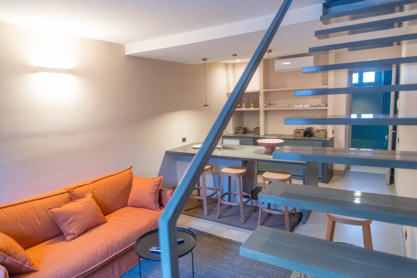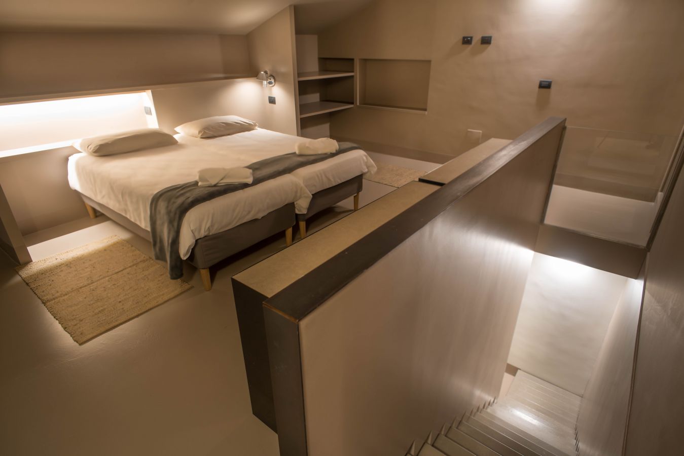 - 2 superior apartments for 2 + 2 guests: one-bedroom apartments on the second floor (50 m² + bathroom), spread over 2 levels: on the first level, a living room with a kitchenette and a double sofa bed; on the second level, a double bedroom, a bathroom with shower, a 12 m² terrace