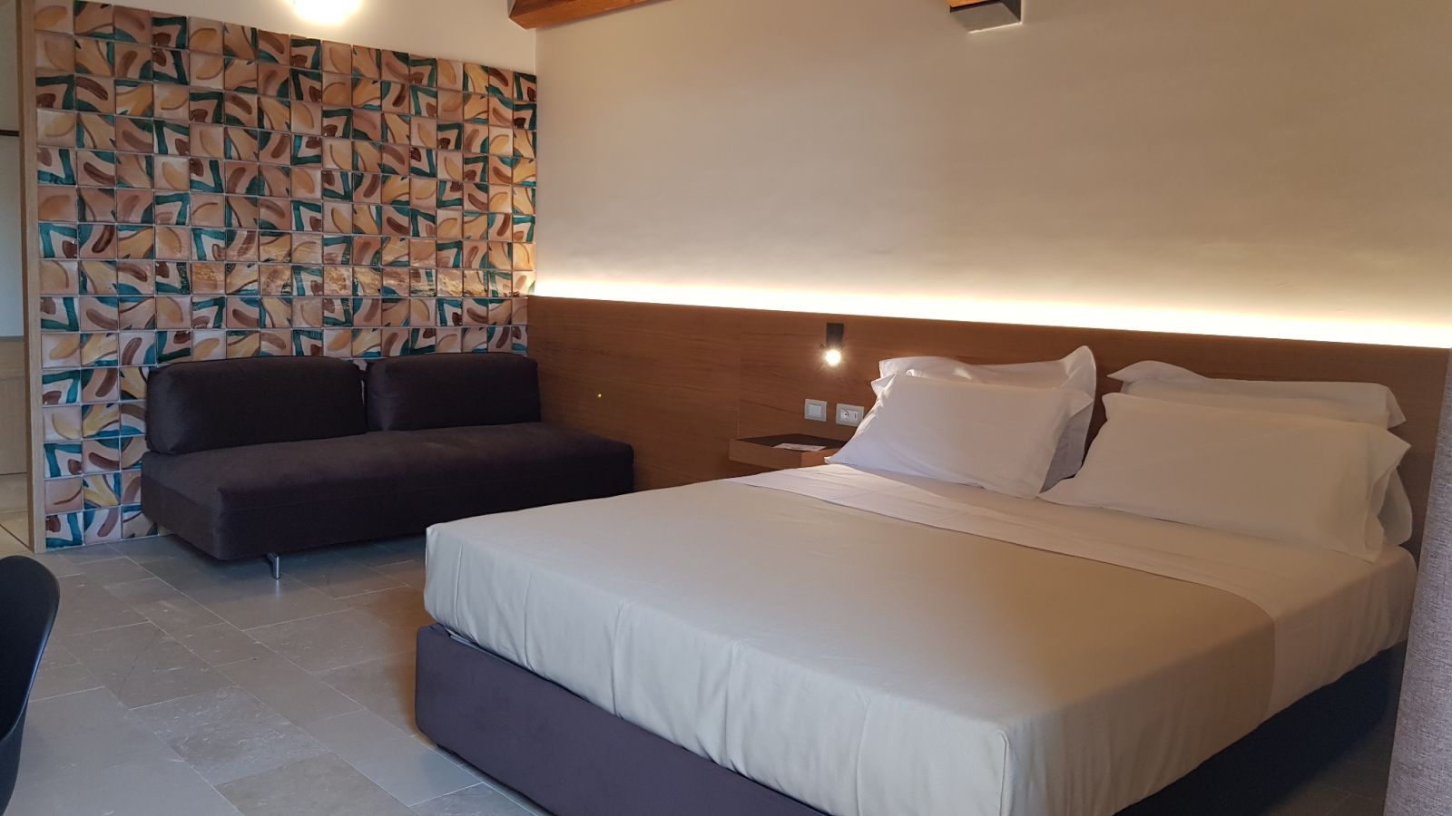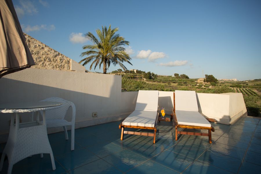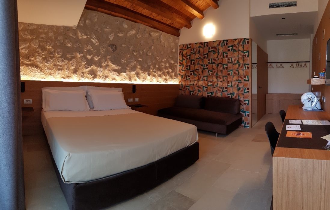 - 1 Superior Plus room up to 3 guests (20 m²): double bed, single sofa bed, furnished terrace with a view on the vineyard