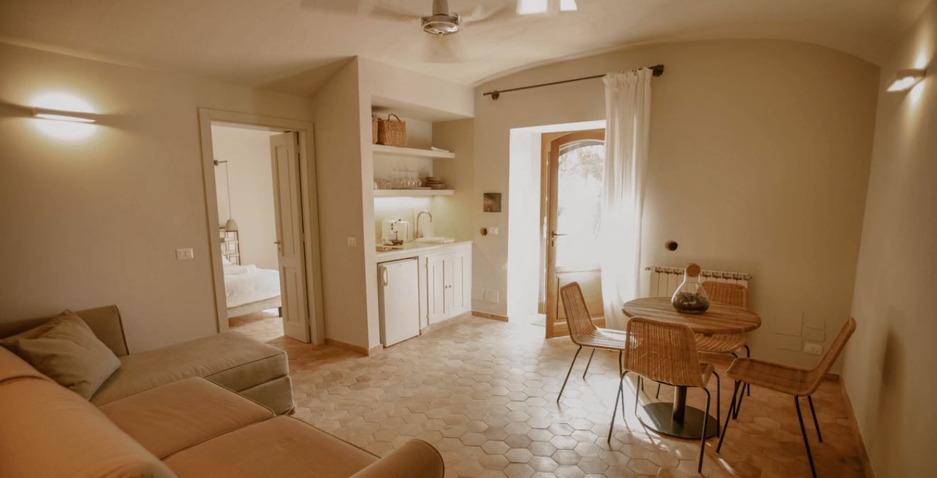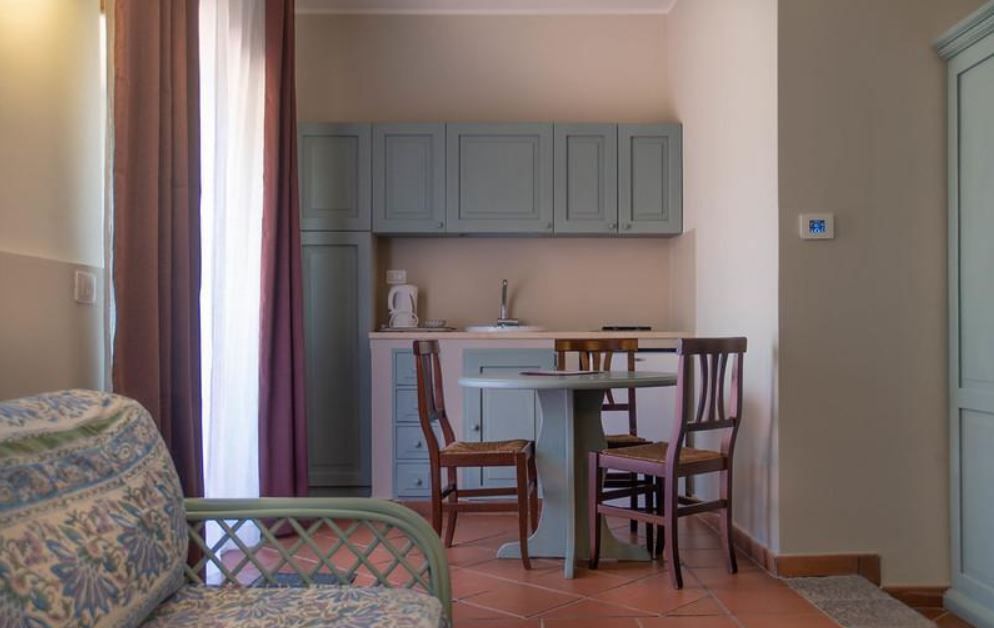 - 2 appartamenti (35 - 40 m²) per 2 + 2 persone al piano terra; composti da camera doppia e soggiorno con angolo cottura e divano letto doppio o due letti singoli; bagno con doccia o doccia + vasca; con spazio esterno attrezzato, sono ubicati nei pressi della piscina
