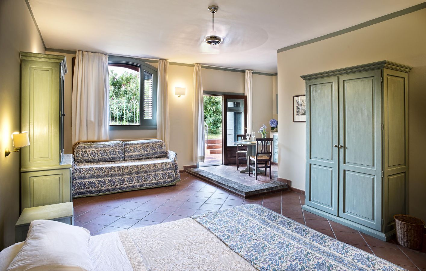 - 6 camere superior (20 - 30 m²) con letto matrimoniale + 1 letto singolo, possono ospitare fino a 3 persone; in una delle camere il terzo posto è un letto a una piazza e mezza in soppalco; bagno con doccia o doccia + vasca; spazio esterno attrezzato