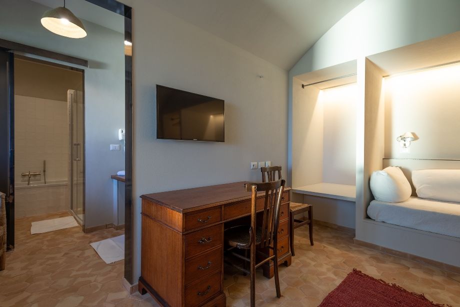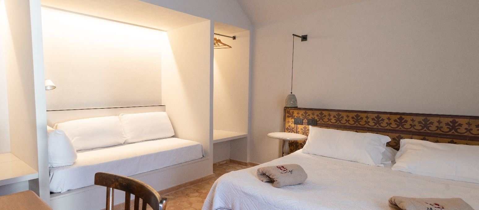 - 4 camere doppie standard (20 - 30 m²), con letto matrimoniale o 2 singoli e bagno con doccia; una delle camere ha un terzo letto in soppalco