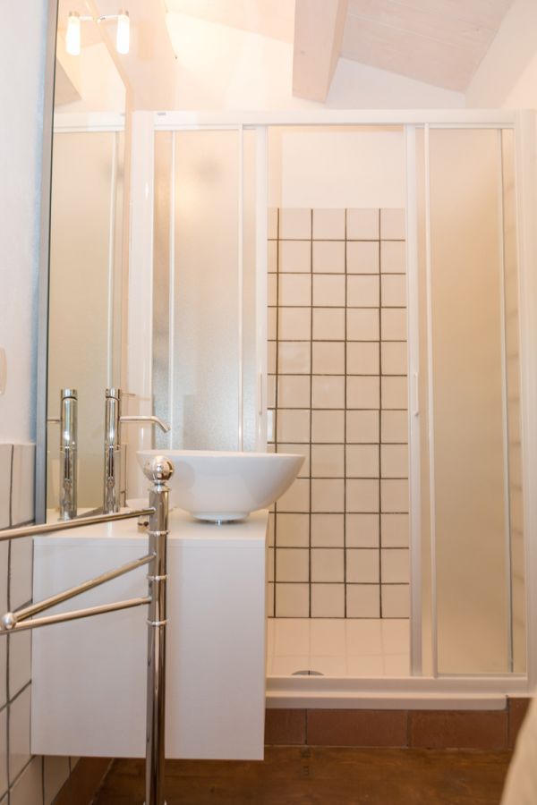 - 1 Camera tripla (38 m²): al piano terra, con letto matrimoniale + letto singolo, bagno con doccia, veranda privata attrezzata di 30 m²