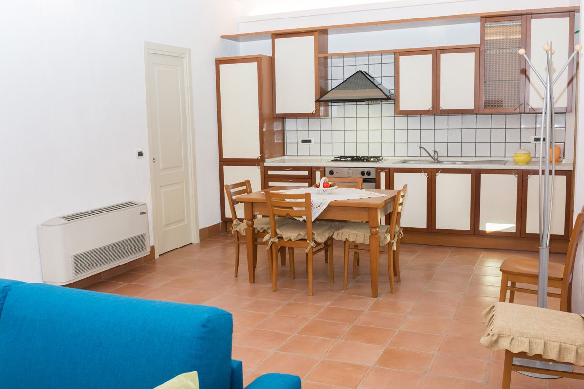 - 1 appartamento con cucina e soppalco per 4 persone (100 m²): al piano terra la cucina, un divano letto matrimoniale, un bagno senza doccia; in soppalco un letto matrimoniale e bagno con doccia