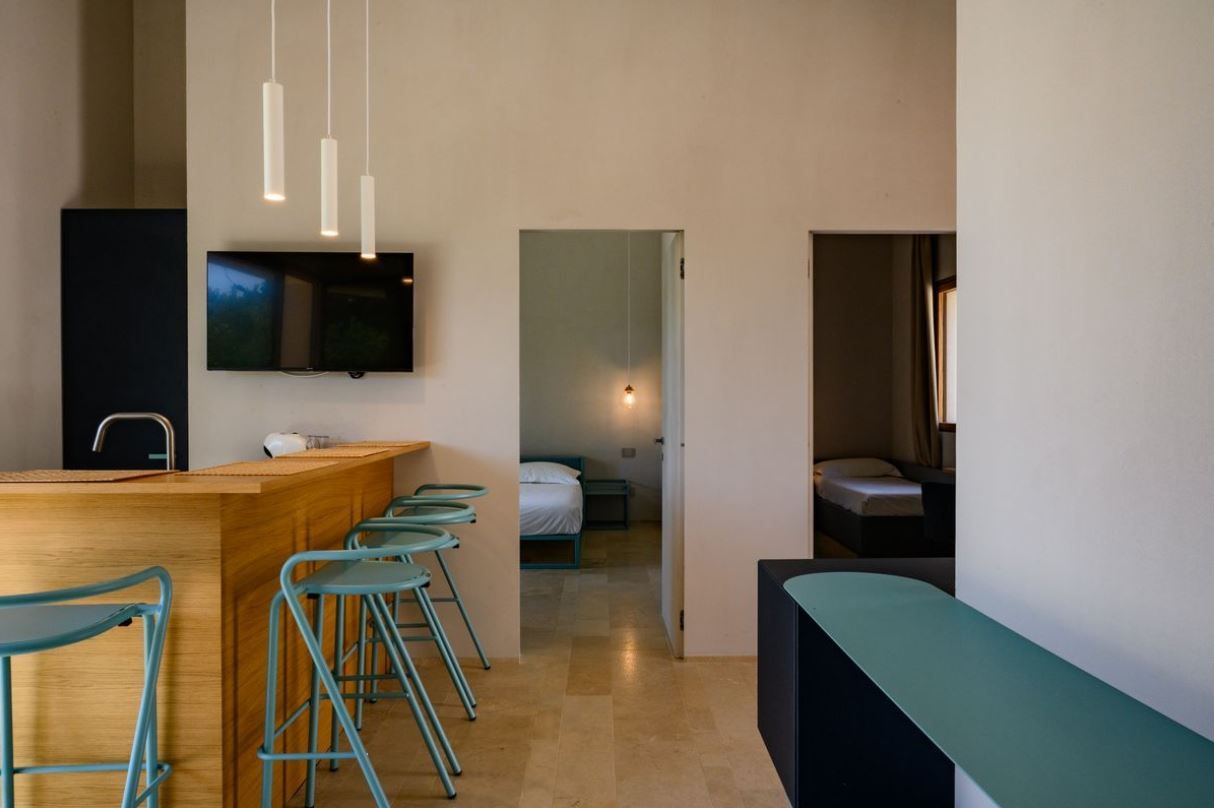 - 3 camere con soppalco: Limoneto, Verdello, Vigneto - (32 m²) per 4 + 1 persone, con finestra e bagno con doccia (una camera dispone anche di vasca da bagno). Il bagno è al piano terra