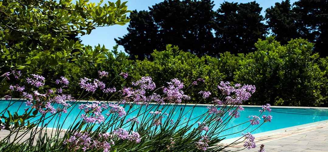 Piscina a sfioro con solarium immersa nell’agrumeto, m. 18 x 11. Aperta da aprile a novembre