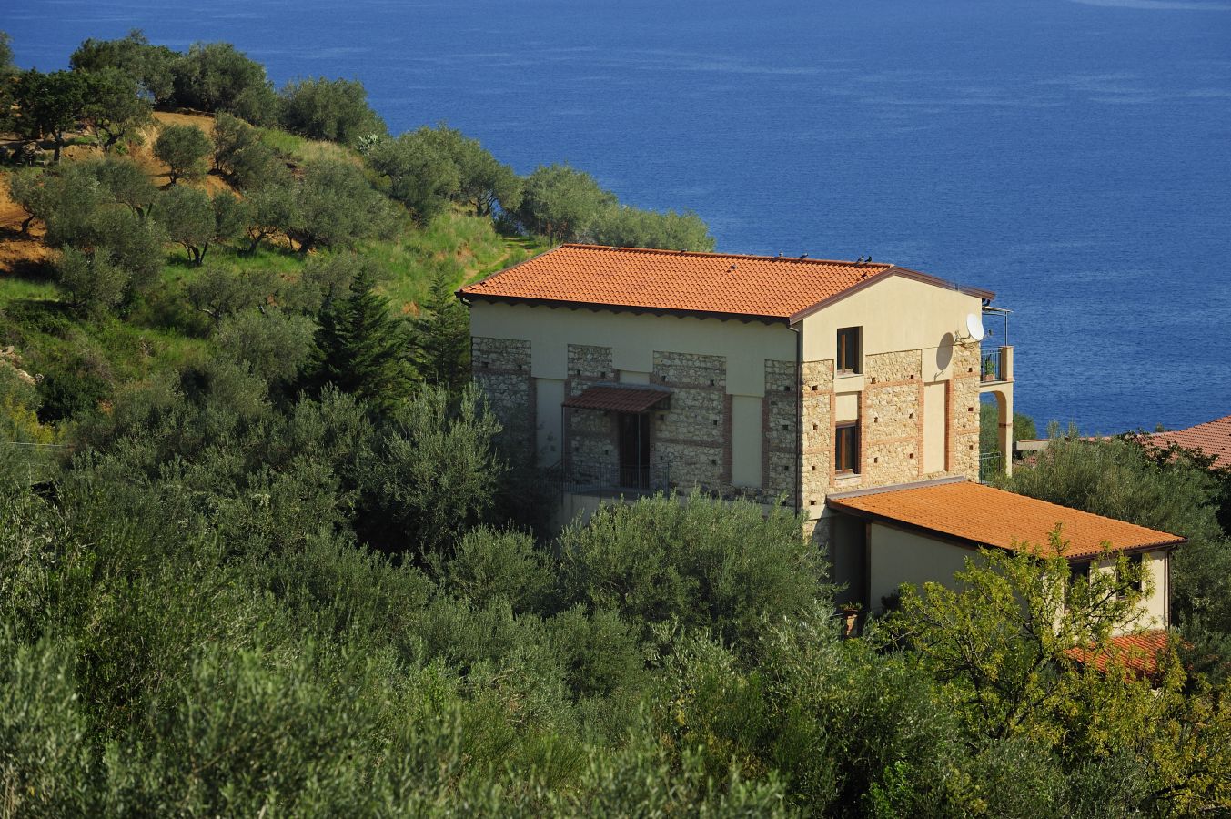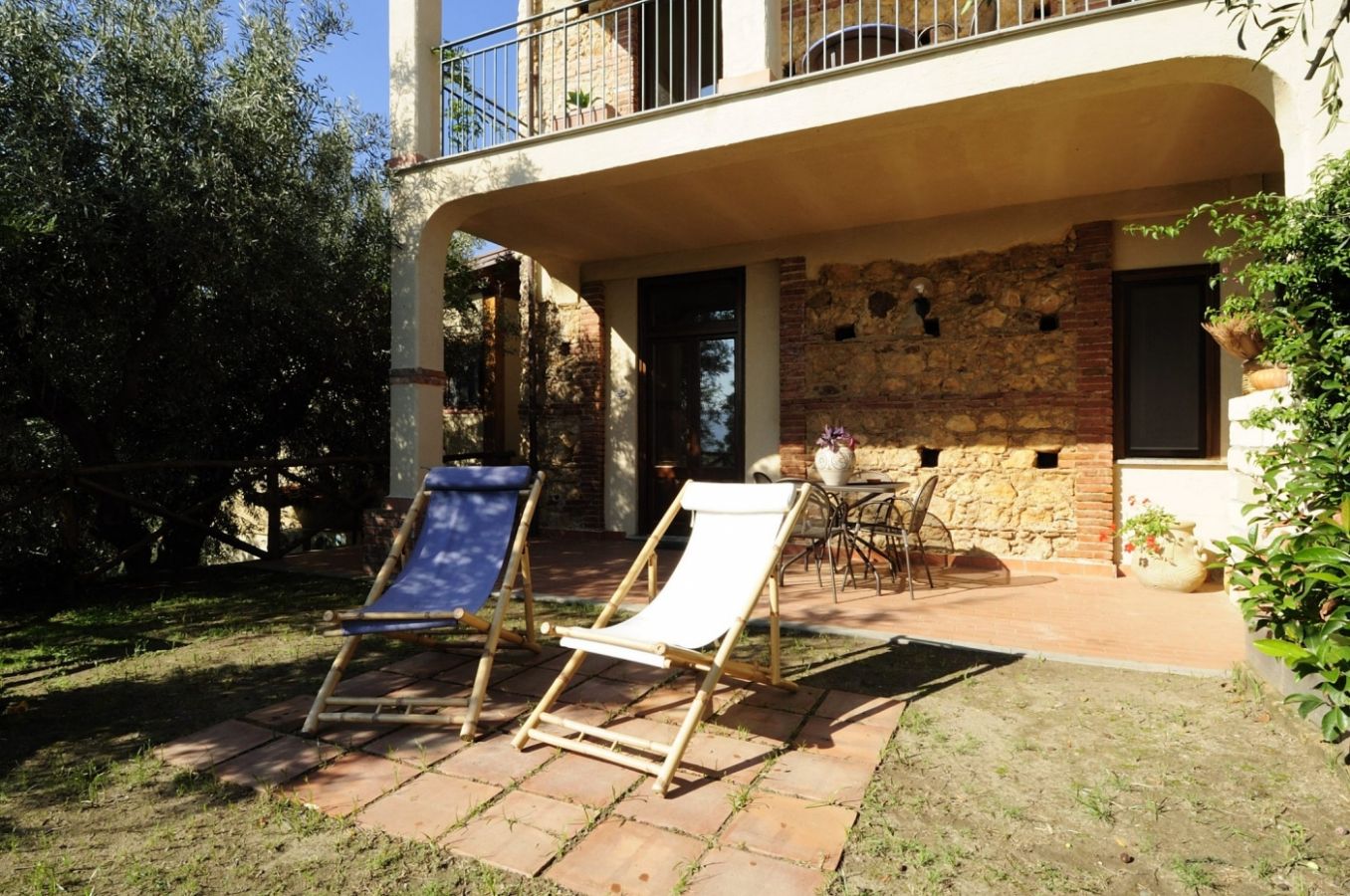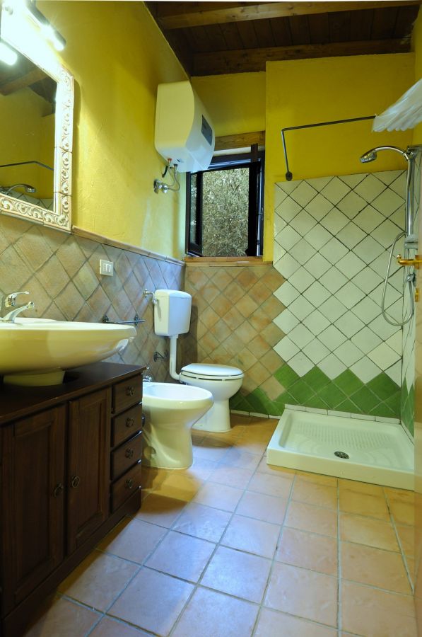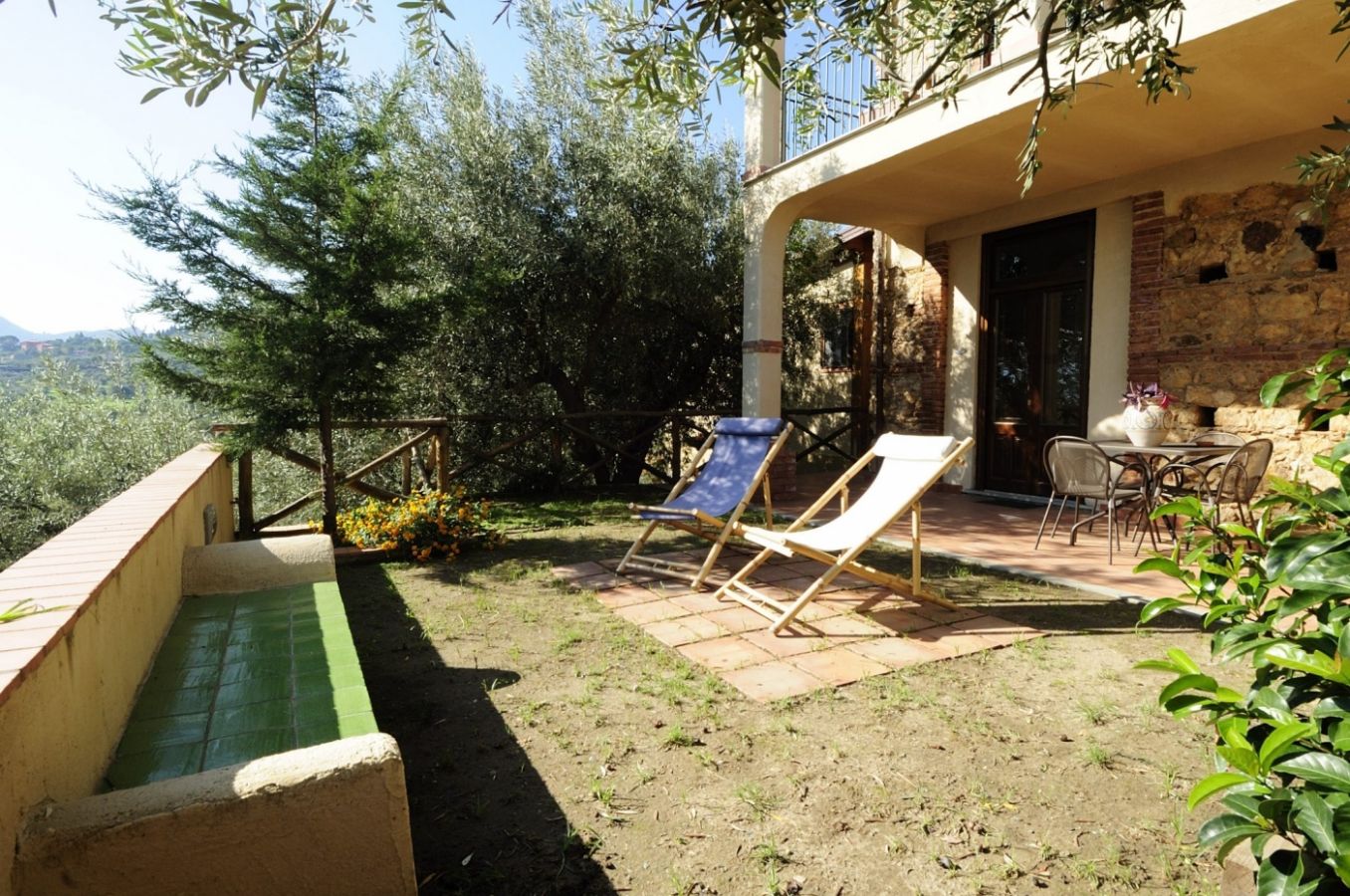 - Torretta (100 m²) per 4+2 persone; trilocale al secondo piano con ampio living con divano letto doppio e cucina attrezzata, una camera da letto matrimoniale, una camera doppia, un bagno con doccia; terrazzo attrezzato con pergolato e ampia veduta sulla vallata e sul mare