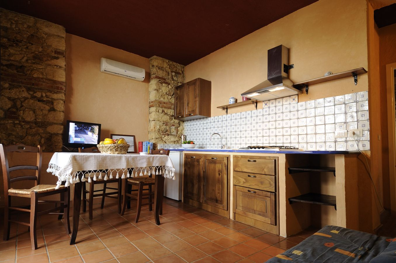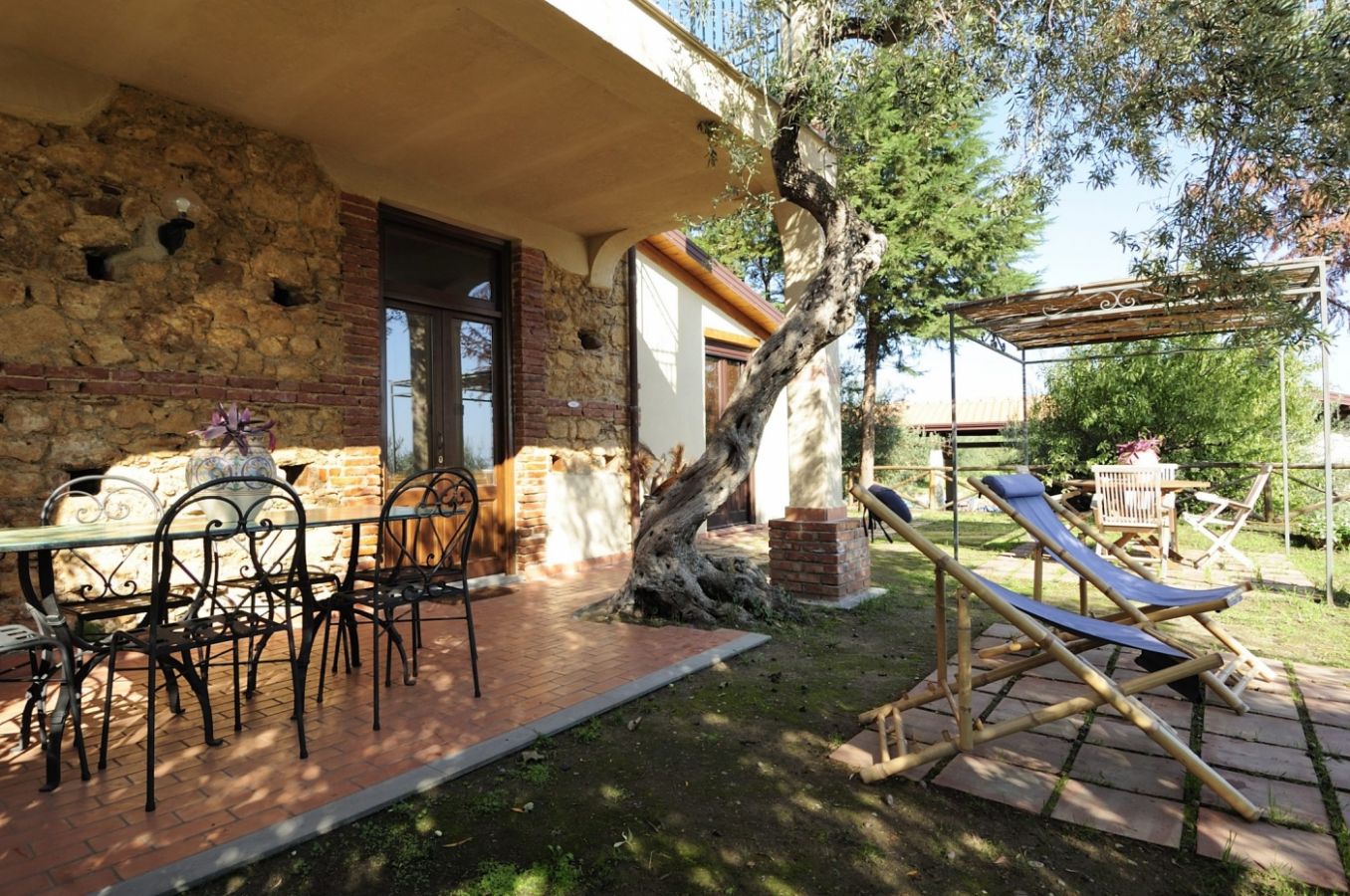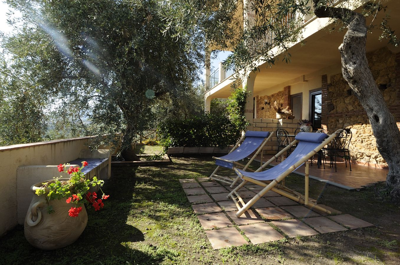 - Torretta (100 m²) per 4+2 persone; trilocale al secondo piano con ampio living con divano letto doppio e cucina attrezzata, una camera da letto matrimoniale, una camera doppia, un bagno con doccia; terrazzo attrezzato con pergolato e ampia veduta sulla vallata e sul mare