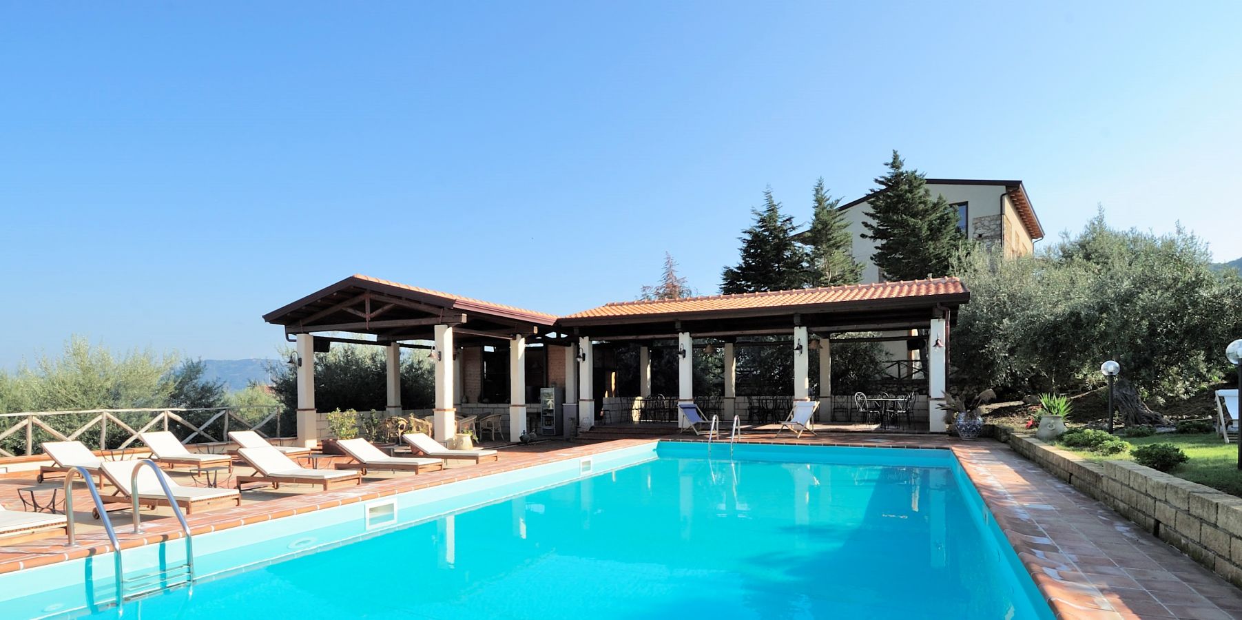 Piscina panoramica con gazebo, spazi verdi