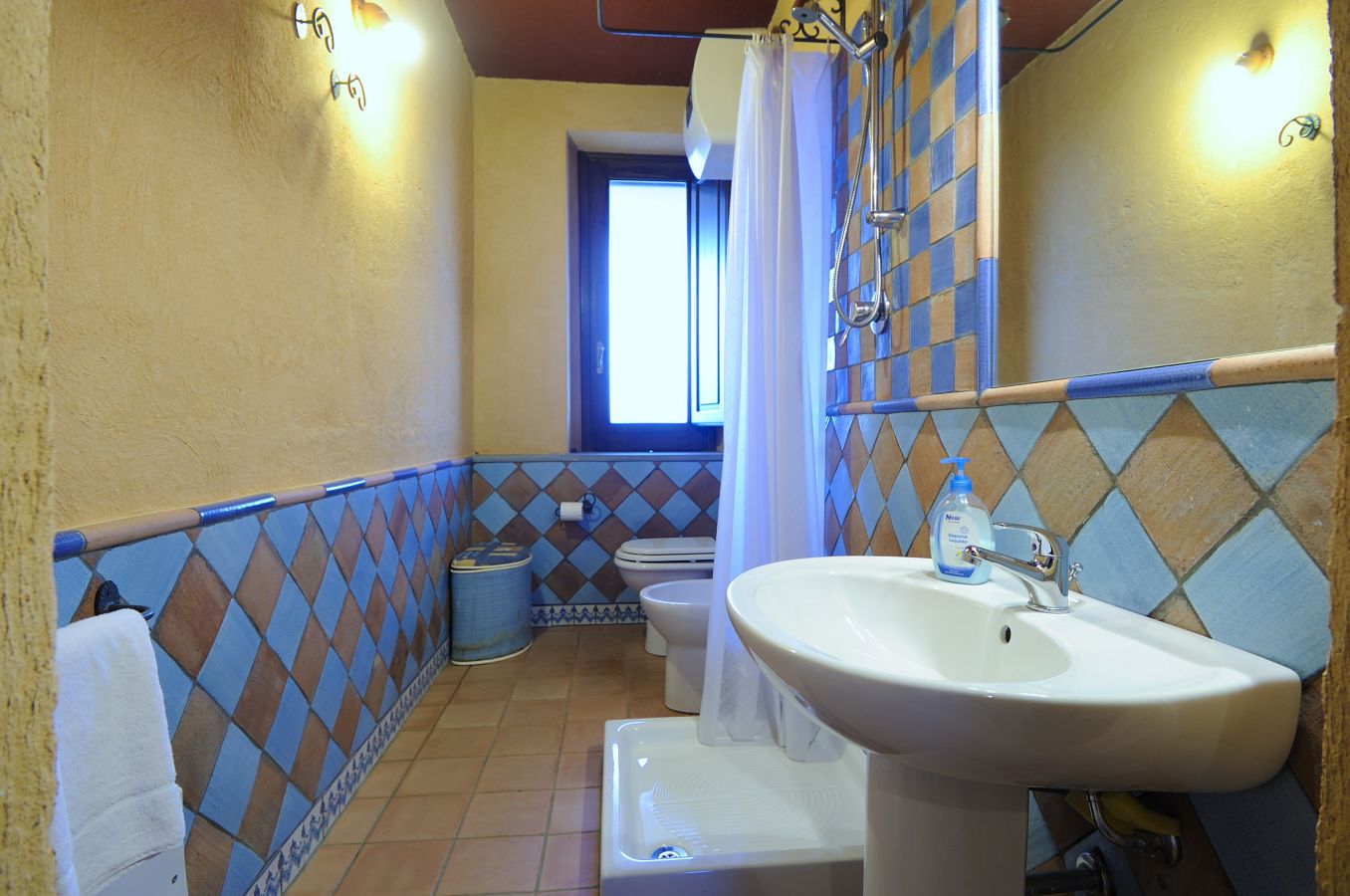- Calamaro (39 m²) per 2+2 persone; bilocale al primo piano con soggiorno-cucina con divano letto doppio, camera matrimoniale, un bagno con doccia; terrazza attrezzata con vista mare