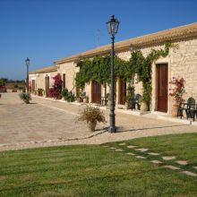 Un esempio non frequente di agriturismo con accesso diretto al mare: attraverso campi di grano un vialetto conduce alla spiaggia sabbiosa presso la foce del fiume Cassibile e a una quieta caletta di ciottoli.