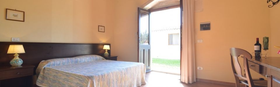- 7 doppie standard (18 m²) con portafinestra e bagno con aeratore; affaccio sulla corte centrale o sul prato