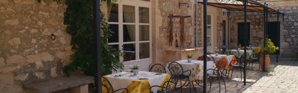 Vecchia masseria ristrutturata con arredi d'epoca e dettagli di tutto gusto. Posta fra mare e barocco siciliano.