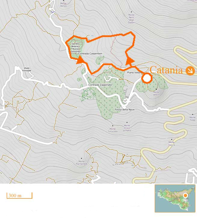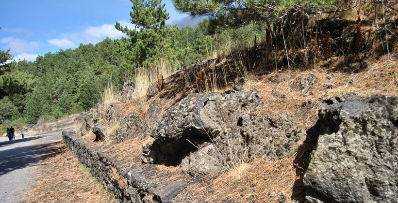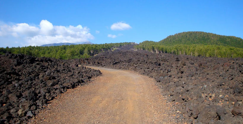 Campi lavici, grotte di scorrimento lavico, hornitos, boschi di pini imponenti, giardino botanico Nuova Gussonea. All’interno 11 punti di osservazione.