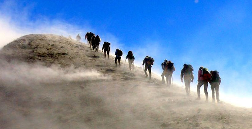 Semicerchio attorno al vulcano fra grotte, crateri, foreste pietrificate, boschi e deserti lavici. Possibilità (in alcuni periodi dell’anno) di bivacco notturno in uno dei rifugi presenti sul percorso.