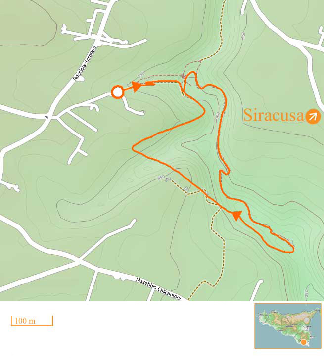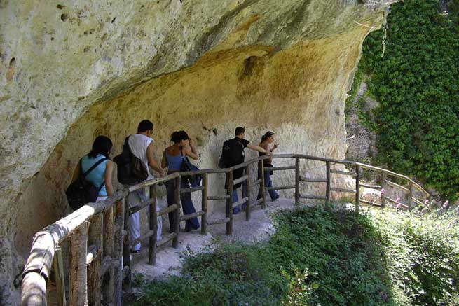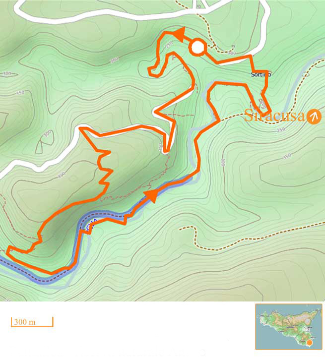 Necropoli nord, torrente calcinara, necropoli di pantalica, castello del principe, necropoli sud, fiume Anapo, necropoli nord. Per raggiungere il sentiero conviene arrivare in auto da Sortino. Itinerario storico e naturalistico nella lista UNESCO.