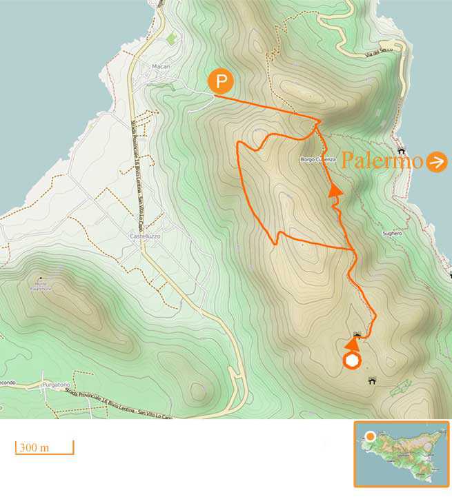 Itinerario naturalistico, raggiunge la vetta più alta della riserva naturale dello Zingaro e si snoda tra i golfi di Cofano e di Castellammare offrendo splendidi scorci panoramici. Possibilità di avvistare diverse specie di uccelli predatori fra cui la rara aquila Bonelli.