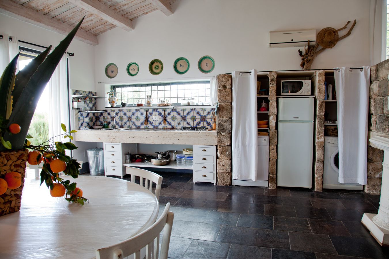 Biancheria letto, bagno e cucina, teli piscina, TV SAT, cucina attrezzata, lavatrice, lavastoviglie (tranne nel Dammuso), frigorifero, tostapane, bollitore, forno elettrico, asciugacapelli, macchina caffè