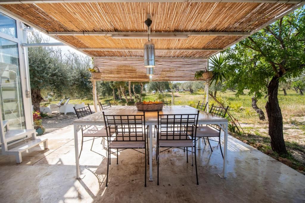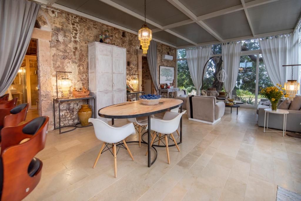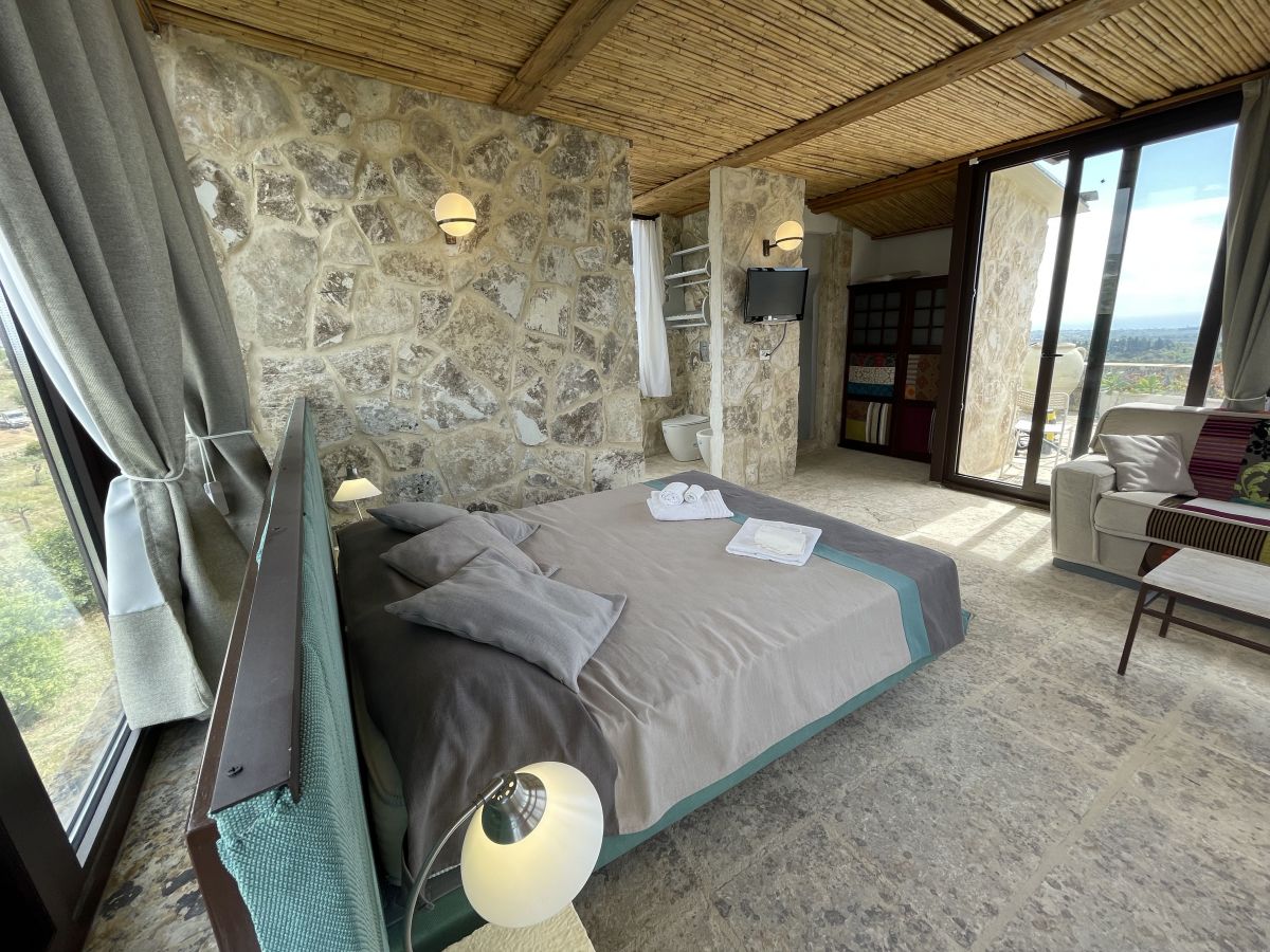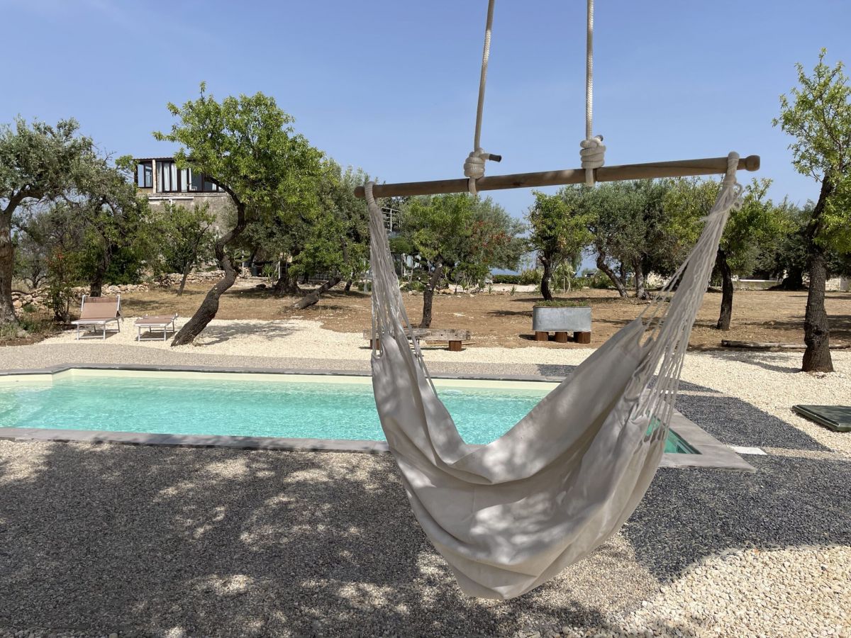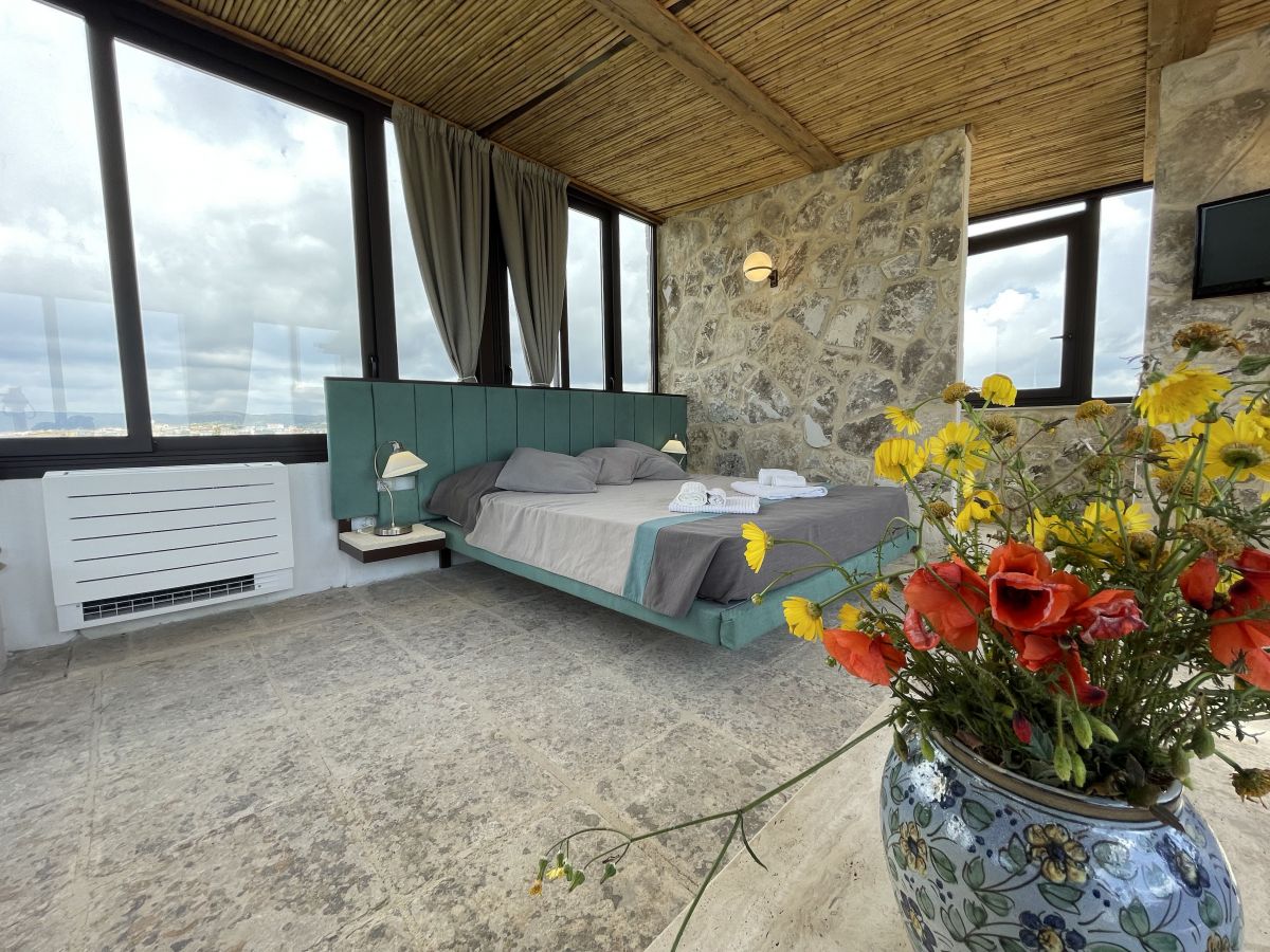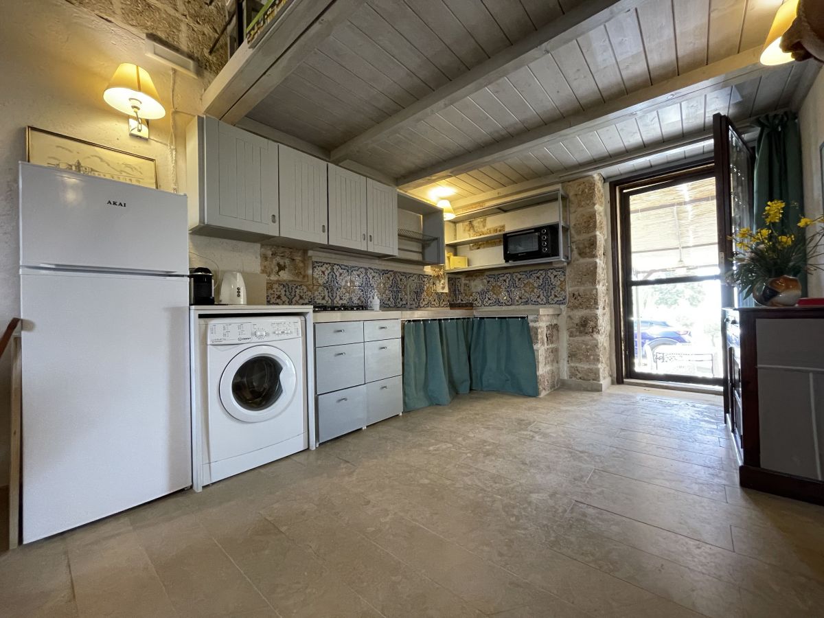 Il Carrubo (110 m²): Antica struttura in pietra composta da due camere da letto matrimoniali (“dammusi”) ciascuna con bagno privato, ampio salone con cucina all'americana. Grande veranda attrezzata, piscina al sale e solarium. La villa è confinante con Il Dammuso