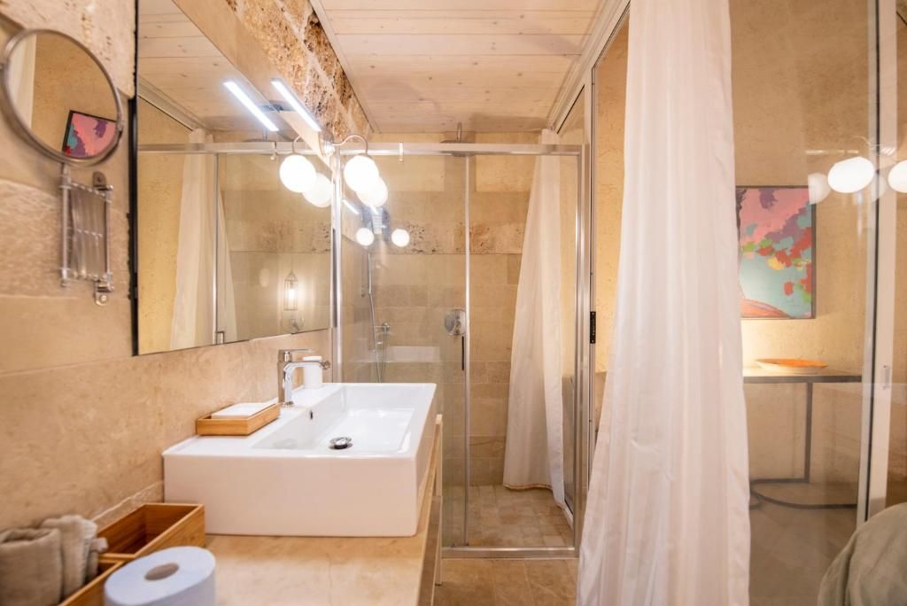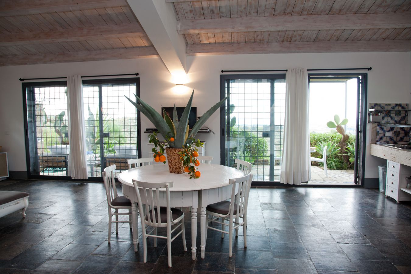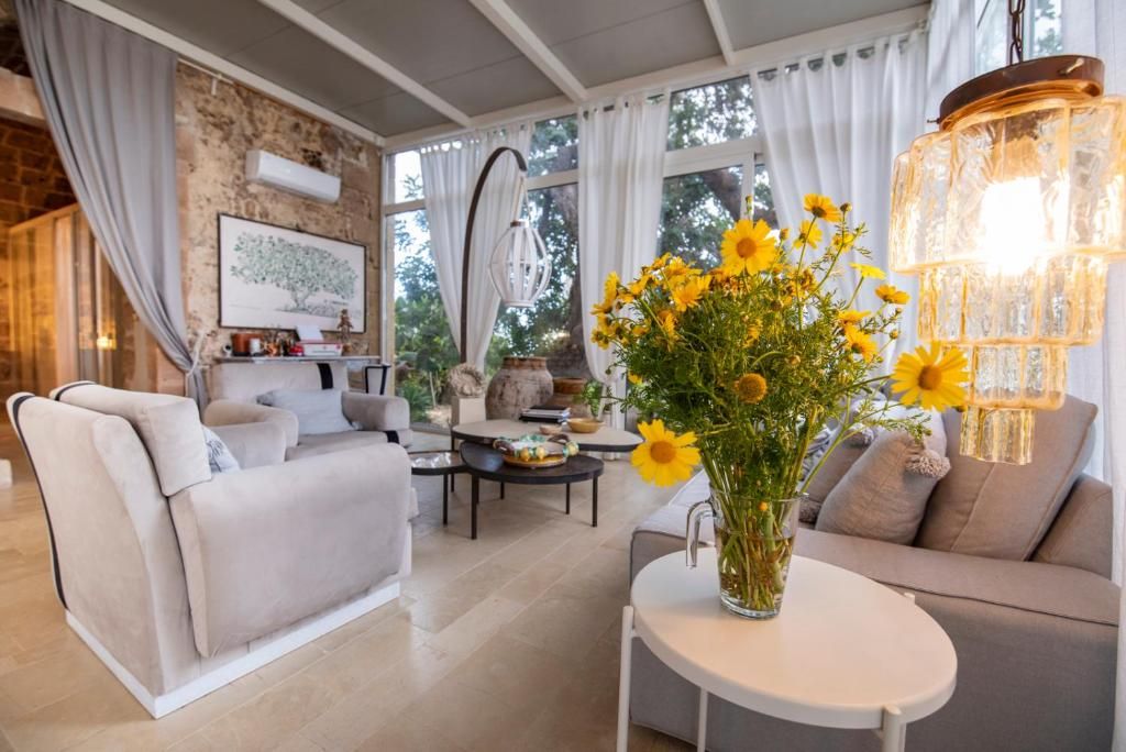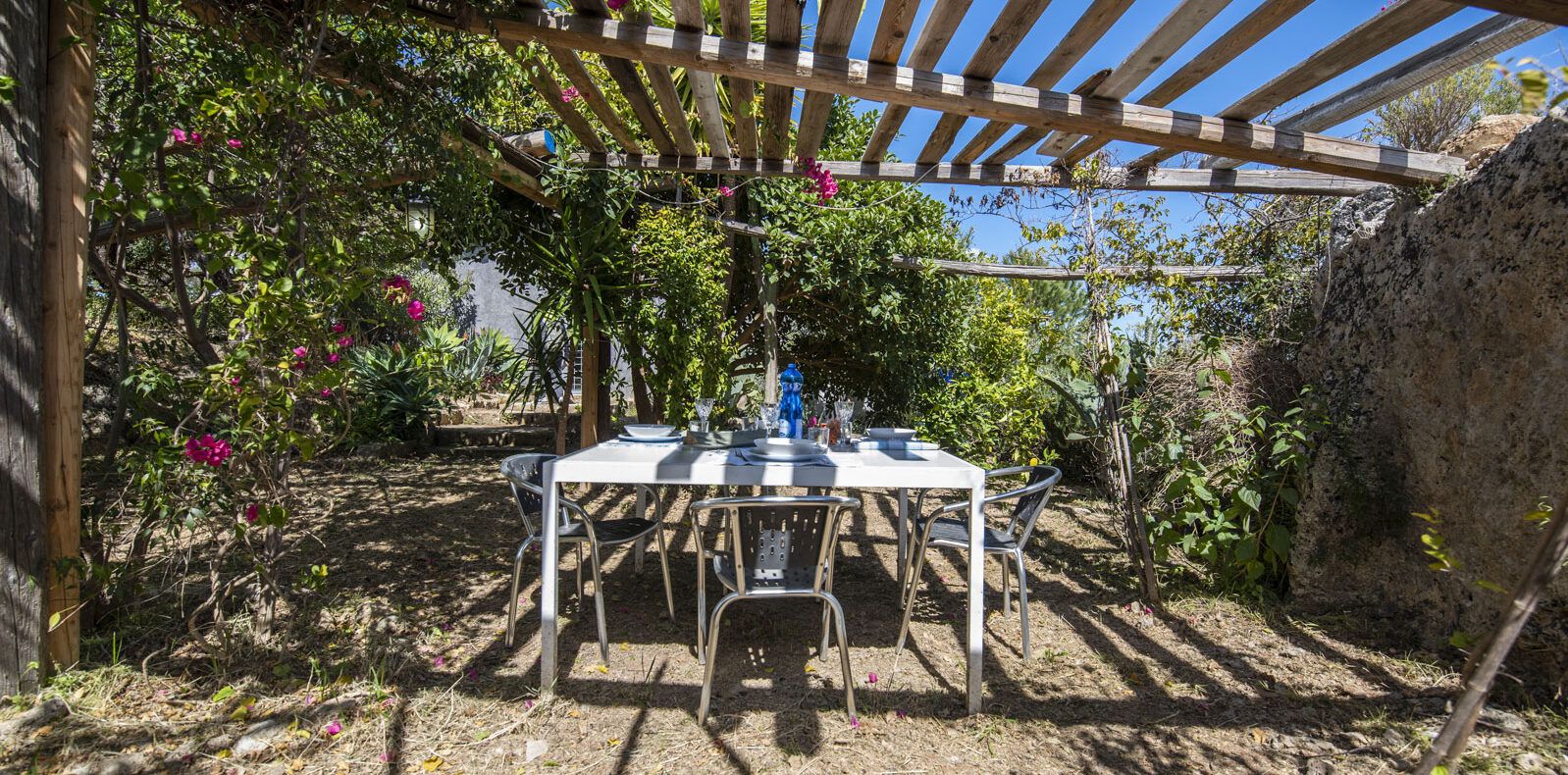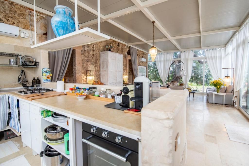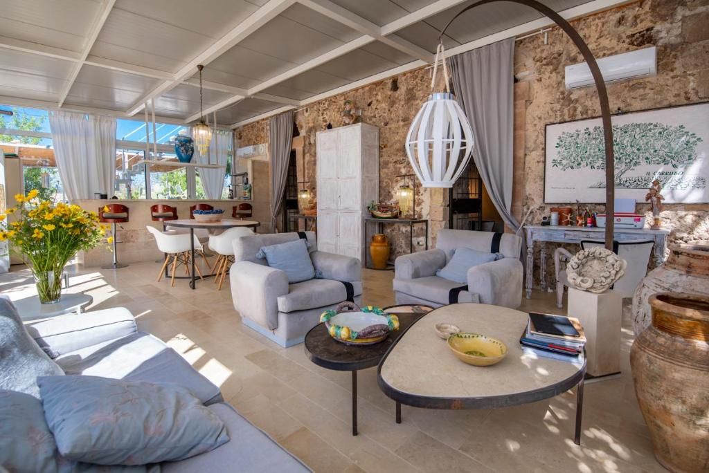 Il Carrubo (110 m²): Antica struttura in pietra composta da due camere da letto matrimoniali (“dammusi”) ciascuna con bagno privato, ampio salone con cucina all'americana. Grande veranda attrezzata, piscina al sale e solarium. La villa è confinante con Il Dammuso
