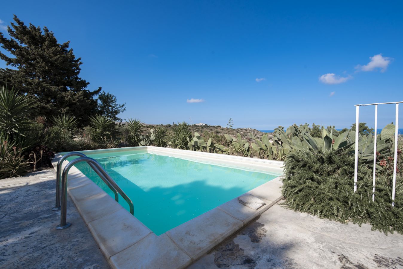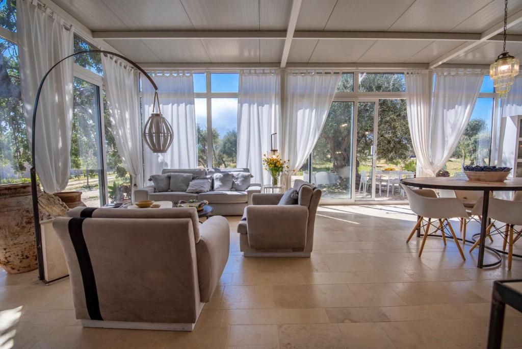 In cima a una collina, con vista su Noto (la “capitale del barocco”) e sul mare, 3 splendide ville dotate di moderni comfort ma cariche di fascino antico. Ogni villa ha una piscina privata con solarium e verande attrezzate e ombreggiate. Tra alberi centenari, la quiete regna sovrana e la magnifica Noto è vicinissima