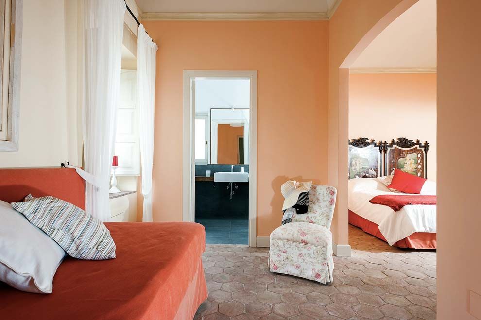 - Mannera: junior suite (35 m²) al primo piano con balcone vista mare e vigneti; massimo 3 persone + culla